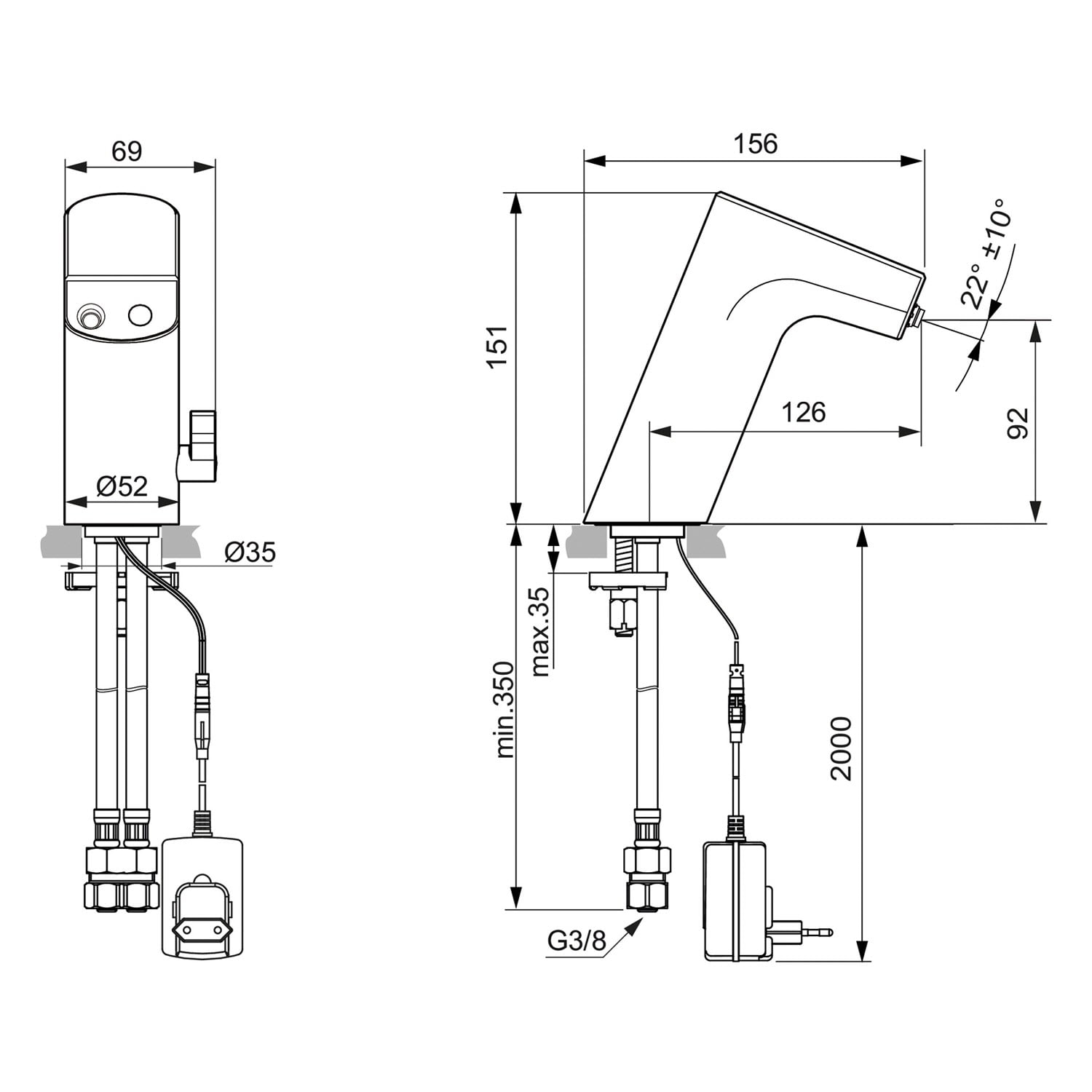 Ideal Standard Intelliflow Waschtischarmatur Netzbetrieb Ausladung 12,6 cm