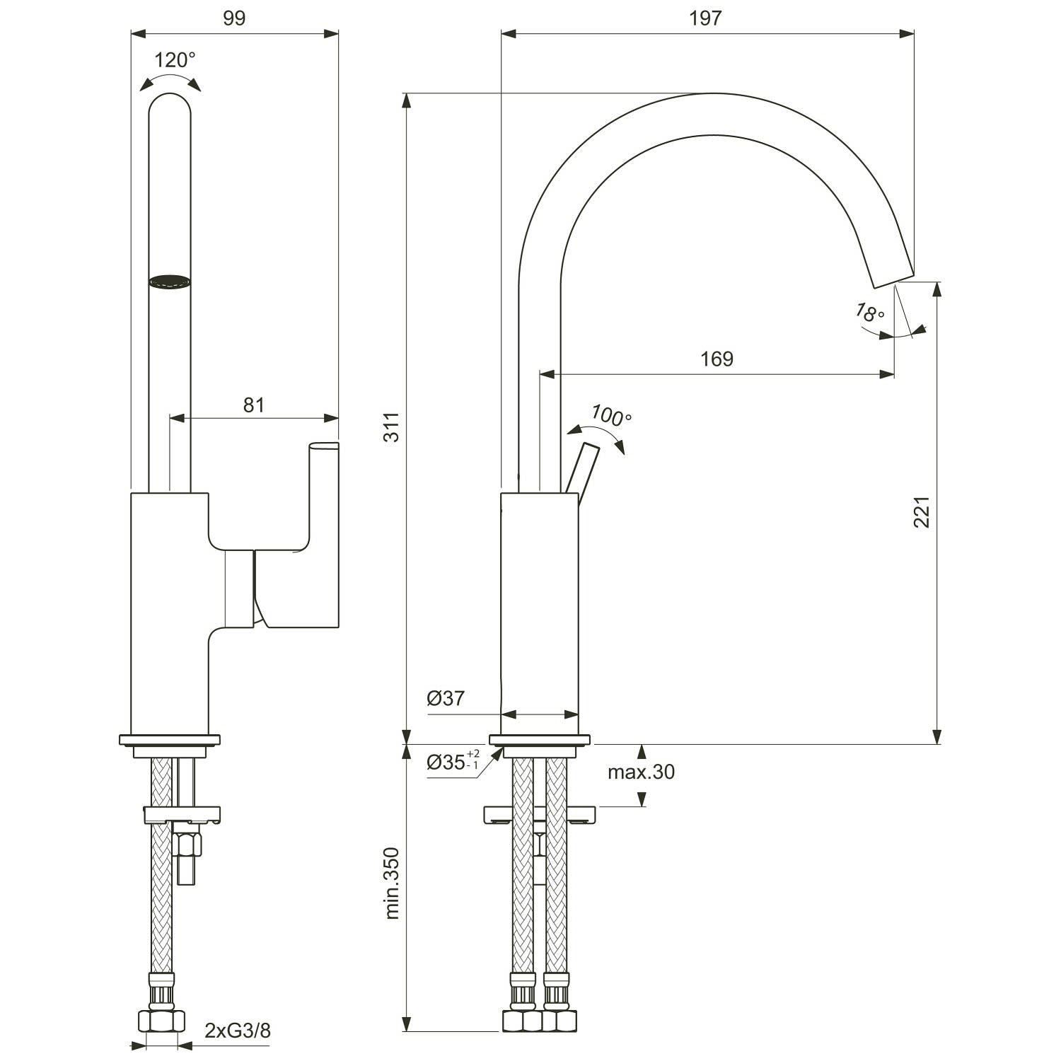 - Schwenkbereich 100 Grad