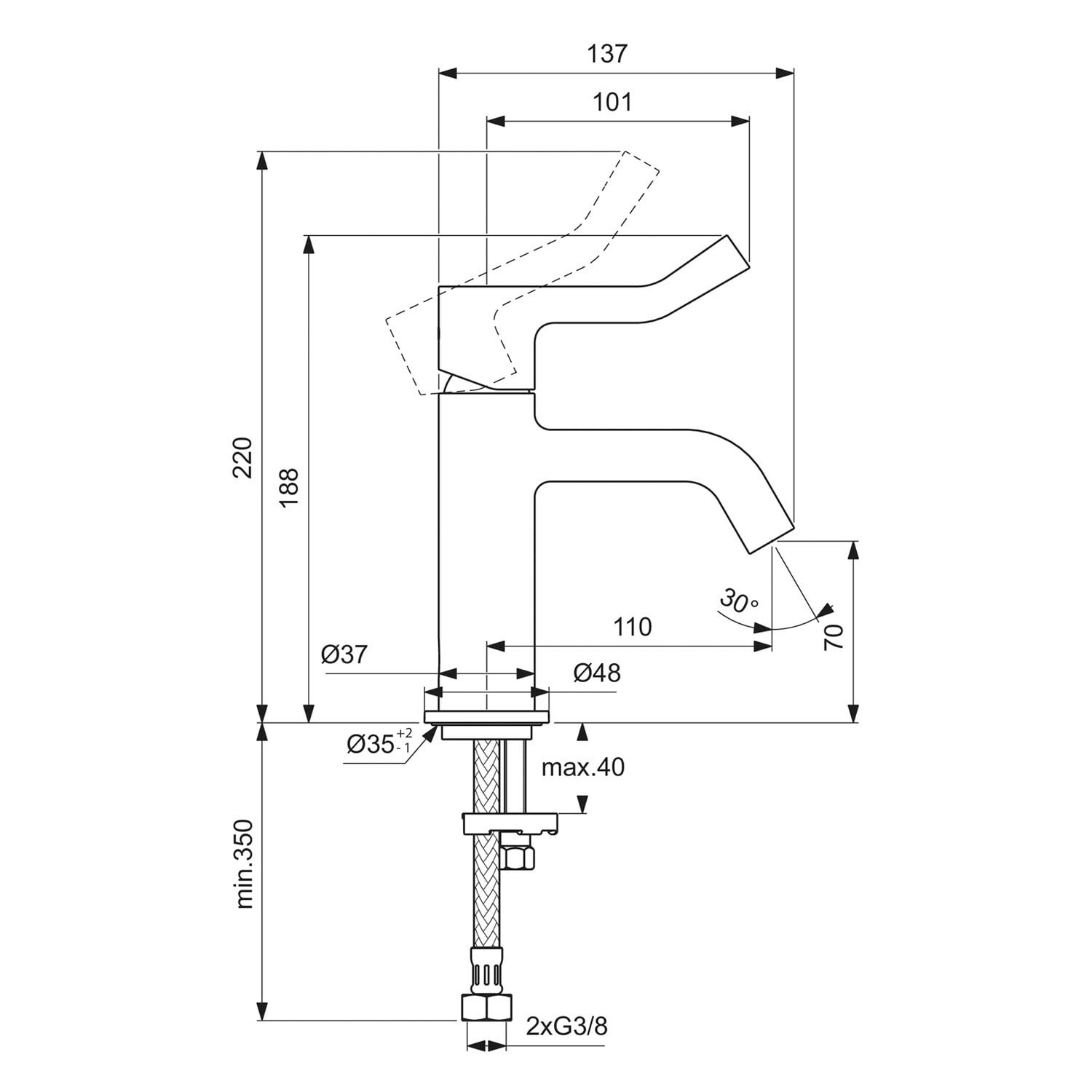 Ideal Standard Joy Waschtischarmatur Ausladung 11 cm ohne Ablaufgarnitur mit langem Griff