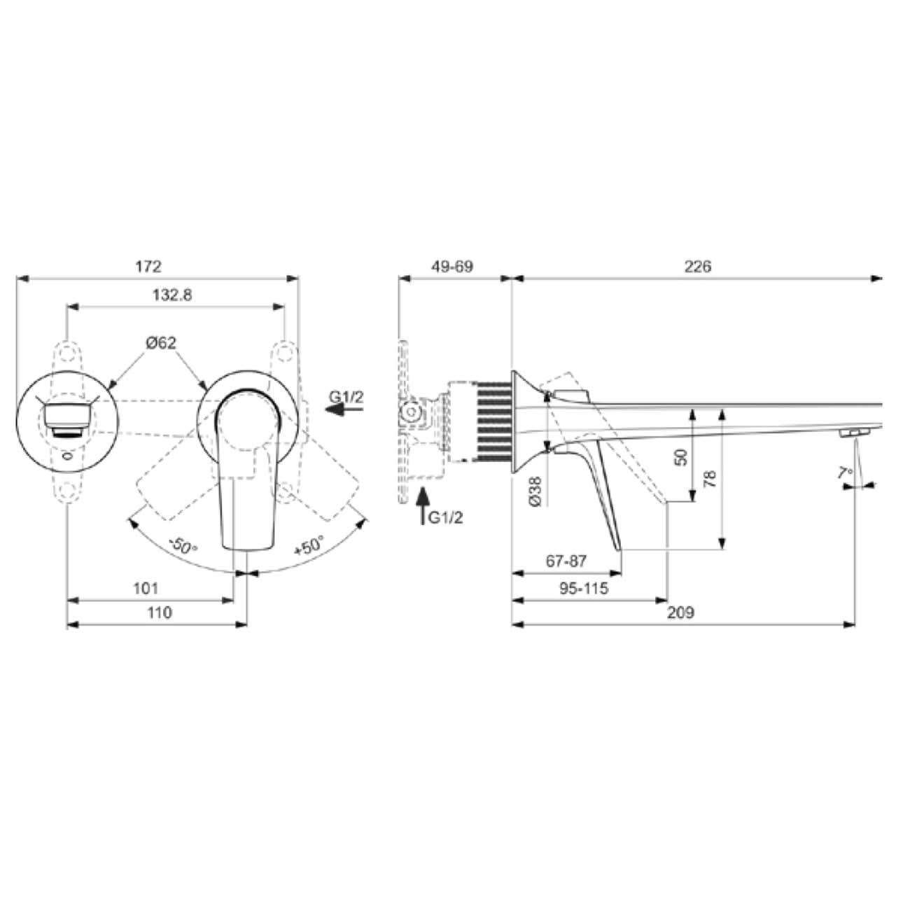 Ideal Standard La Dolce Vita Einhebel-Wand-Waschtischarmatur Unterputz, Ausladung 20,9 cm