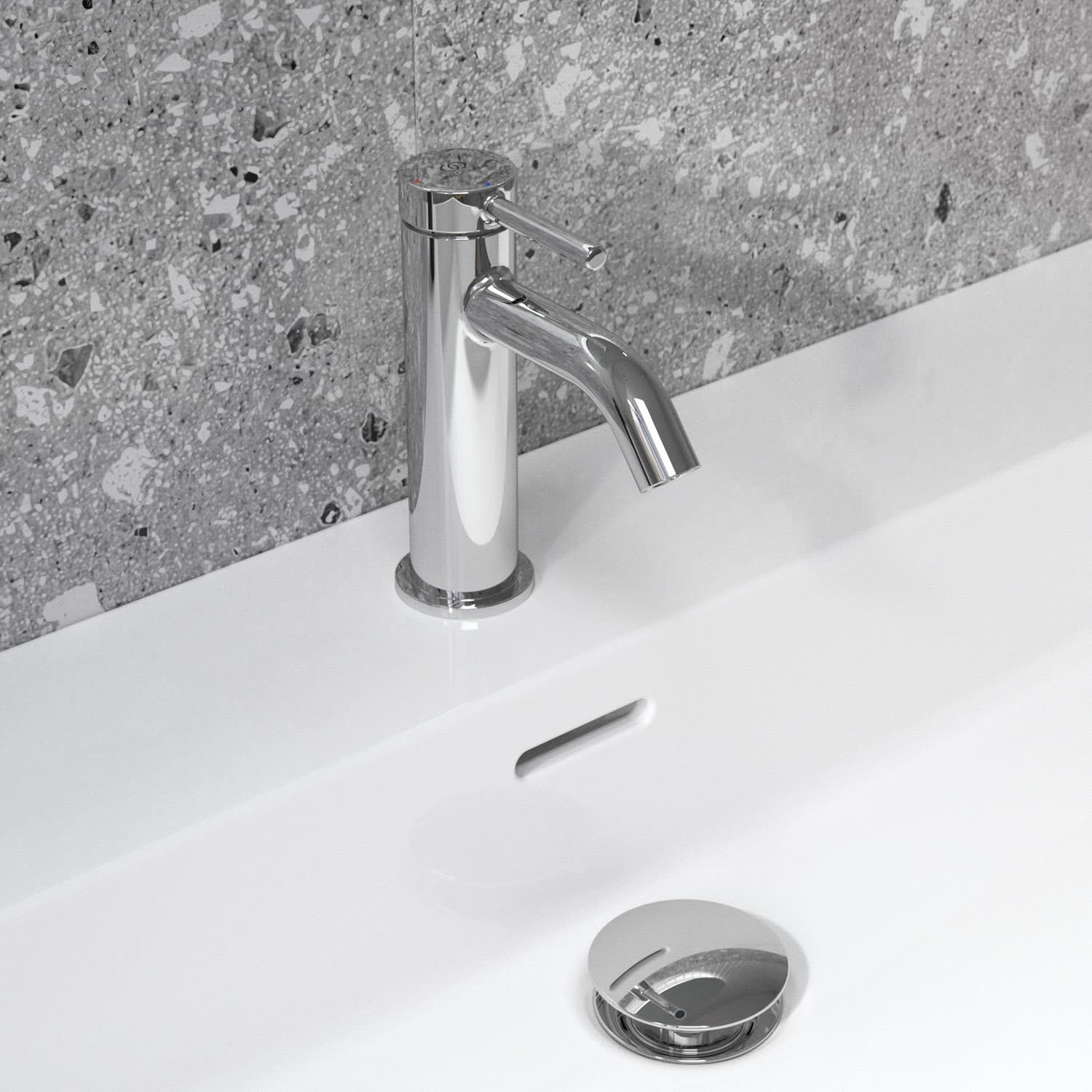 Die Lastani Waschtischarmatur von Ideal Standard vereint modernes Design mit nachhaltiger Funktionalität. Ihr schlankes, elegantes Design sorgt für eine einzigartige Ästhetik, die jedem Badezimmer einen Hauch von Raffinesse verleiht. Die Auslaufhöhe von 8,5 cm sorgt für ein komfortables und bequemes Benutzererlebnis. Die BlueStart-Funktion spart Energie, Wasser und Geld ohne Komfortverlust durch Kaltwasser bei Hebelmittelstellung. Dank des Easy-Fix Schnellmontagesystems lässt sich die Armatur besonders einfach installieren und sorgt für ein schnelles und stressfreies Montageerlebnis. Die Armatur ist mit einem hochwertigen Push-Open-Ventil ausgestattet, das den Wasserablauf reguliert. Die FirmaFlow®-Kartusche überzeugt durch ihre lange Lebensdauer und ihren hohen Komfort. Sie steuert die Wassertemperatur und den Durchfluss präzise und reduziert den Wasserverbrauch gleichzeitig auf effiziente 3,8 Liter pro Minute. So schont die Armatur die Umwelt und Ihren Geldbeutel, ohne dass Sie Kompromisse machen müssen.