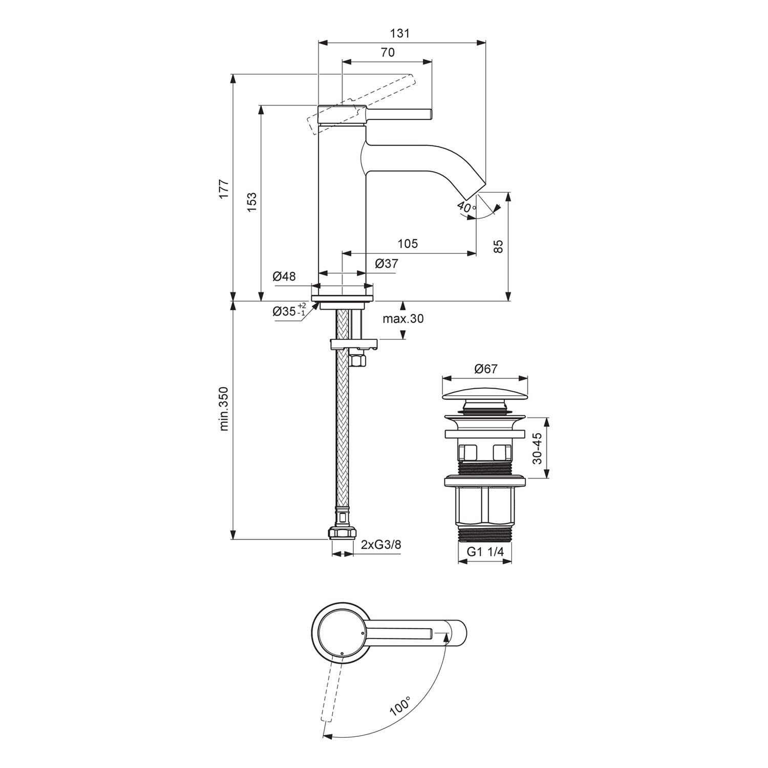 Ideal Standard Lastani Waschtischarmatur mit Push-Open Ventil