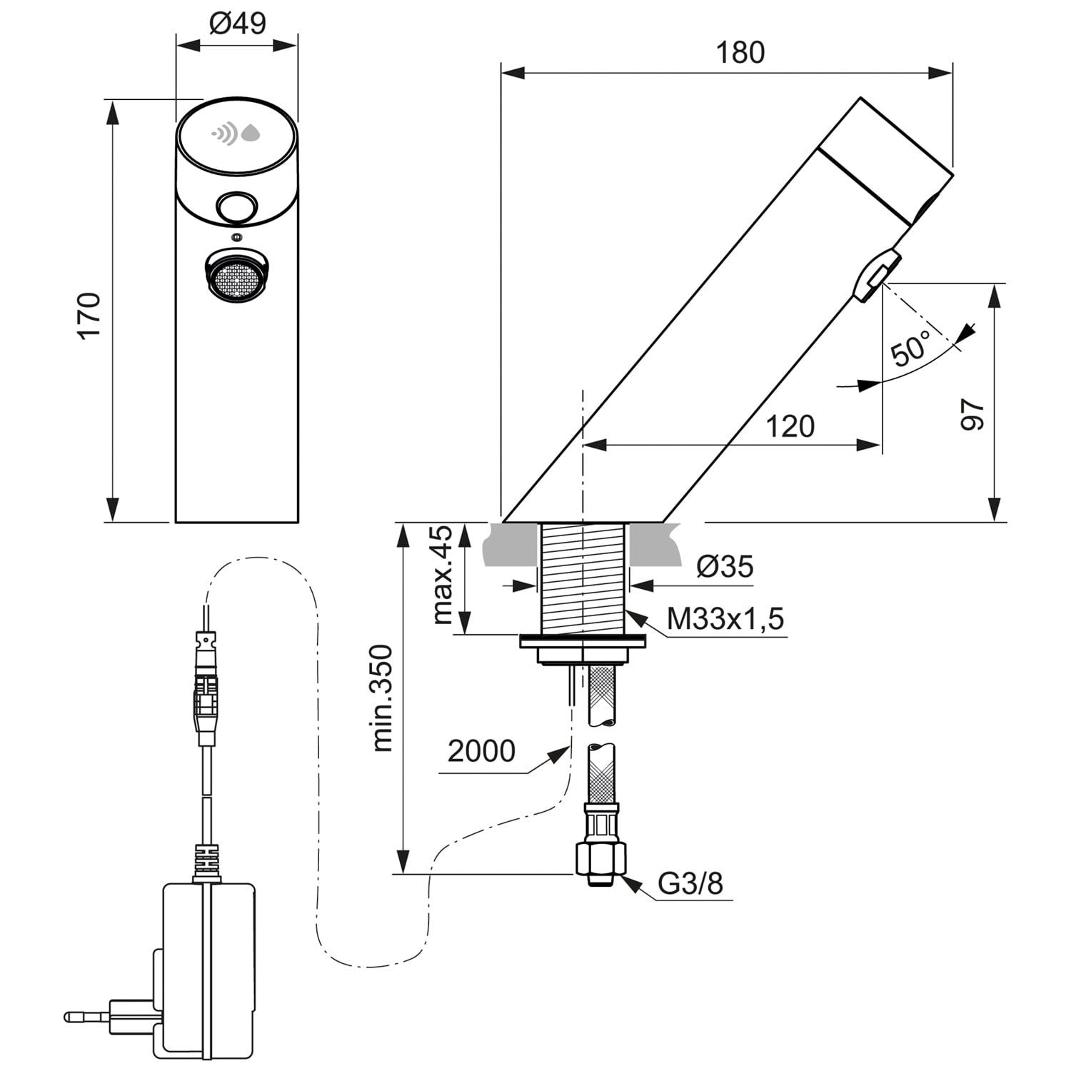 Ideal Standard Sensorflow Waschtischarmatur, ohne Mischung, mit Netzteil
