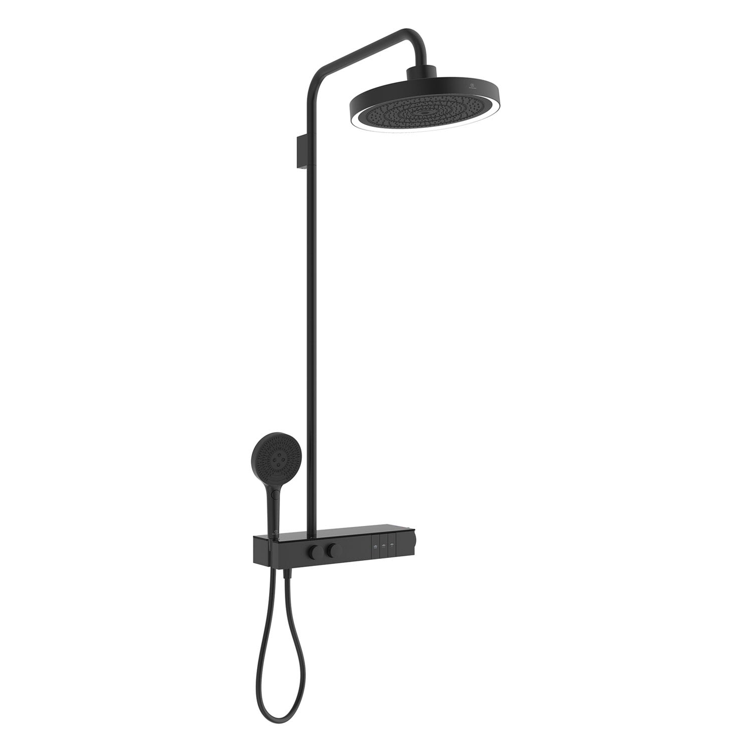 Ideal Standard Solos Duschsystem mit AP-Brausethermostat Ceratherm Navigo® mit Ablage, 3-Funktions-Hand- & Kopfbrause mit Leuchtring