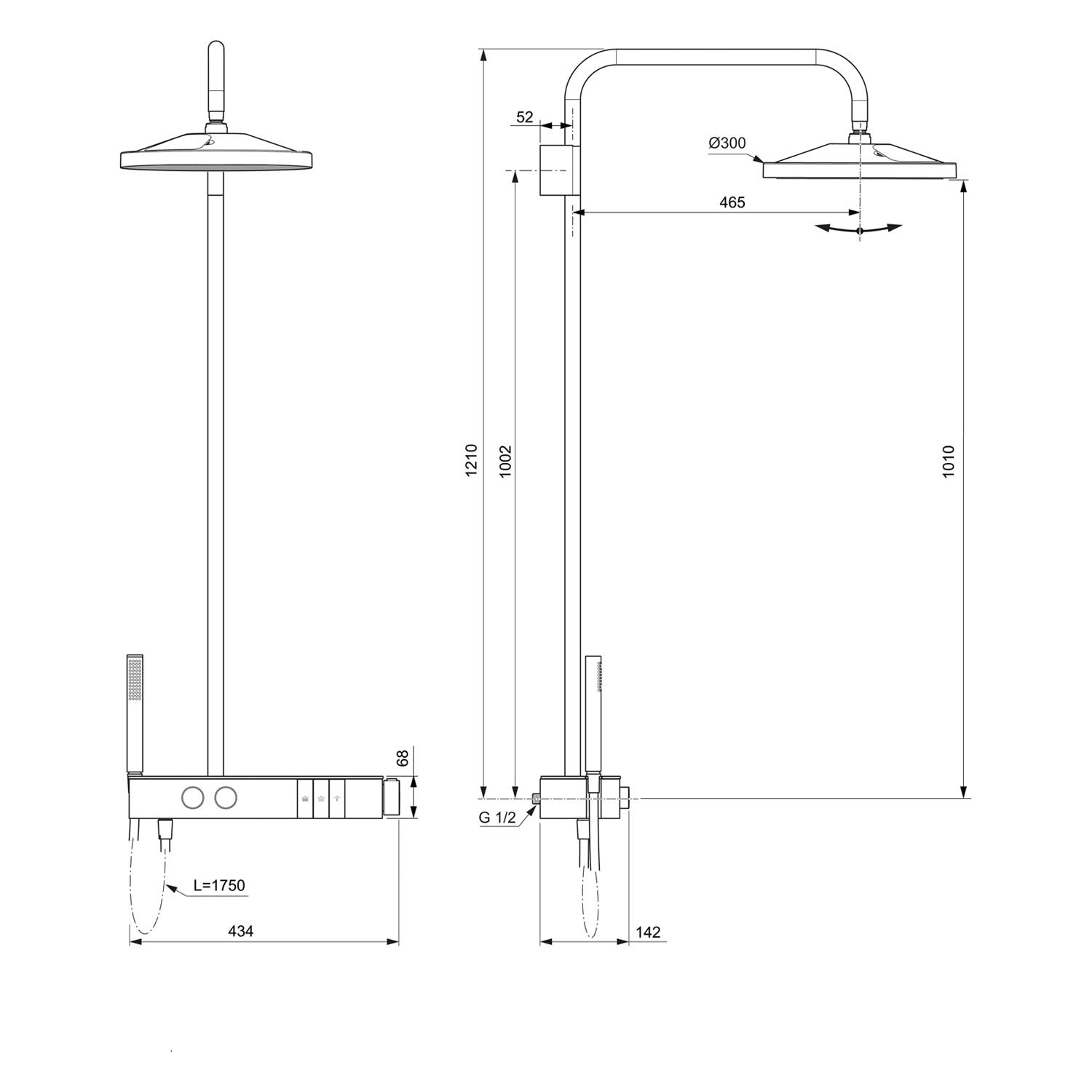 mit Stabhandbrause und 3-Funktion-Kopfbrause