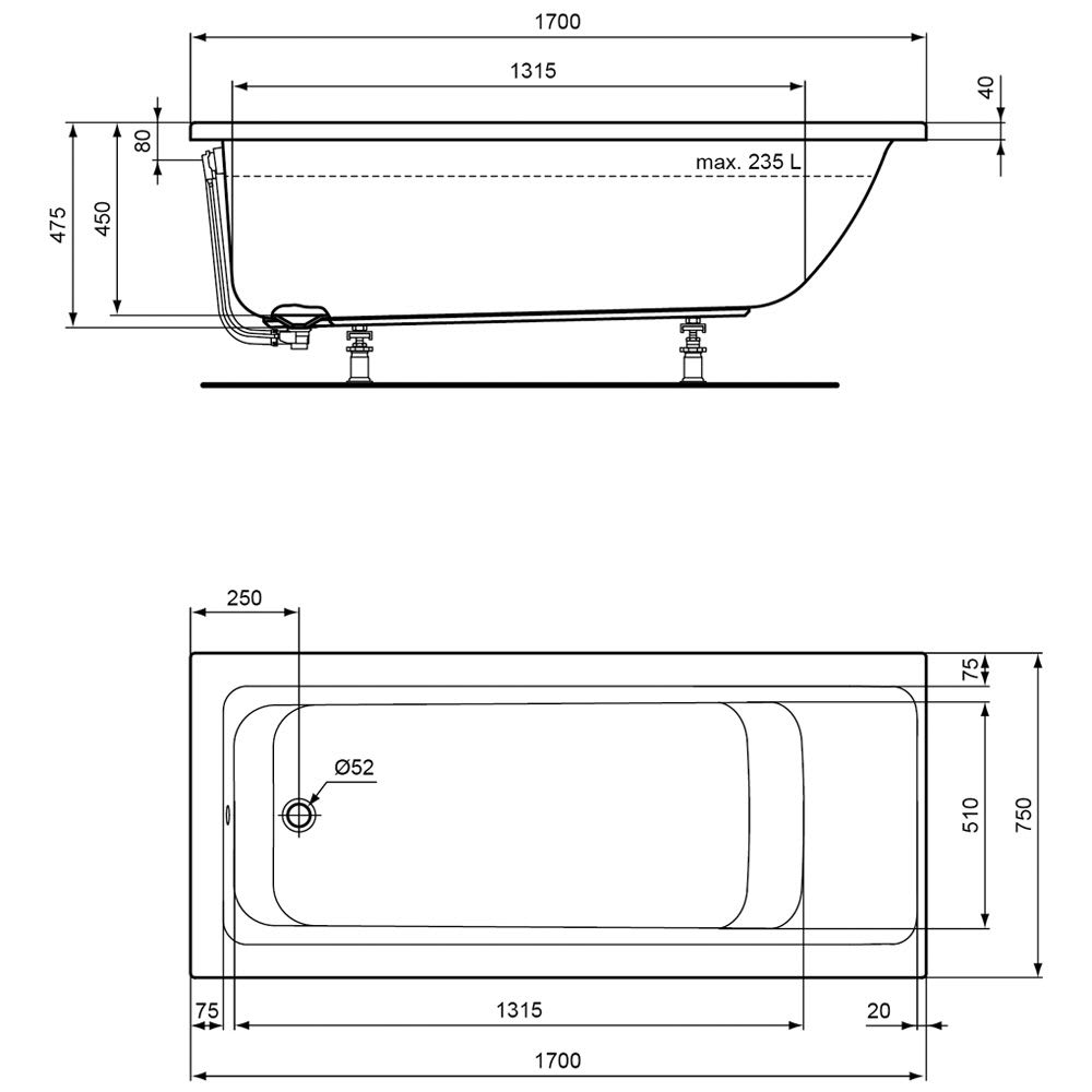 - Wasserinhalt: ca. 235 Liter