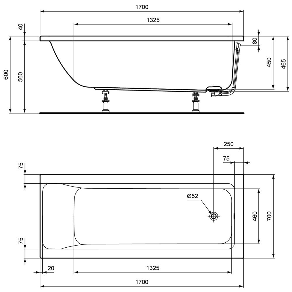 Ideal Standard Connect Air Körperform-Badewanne 170 x 70 cm
