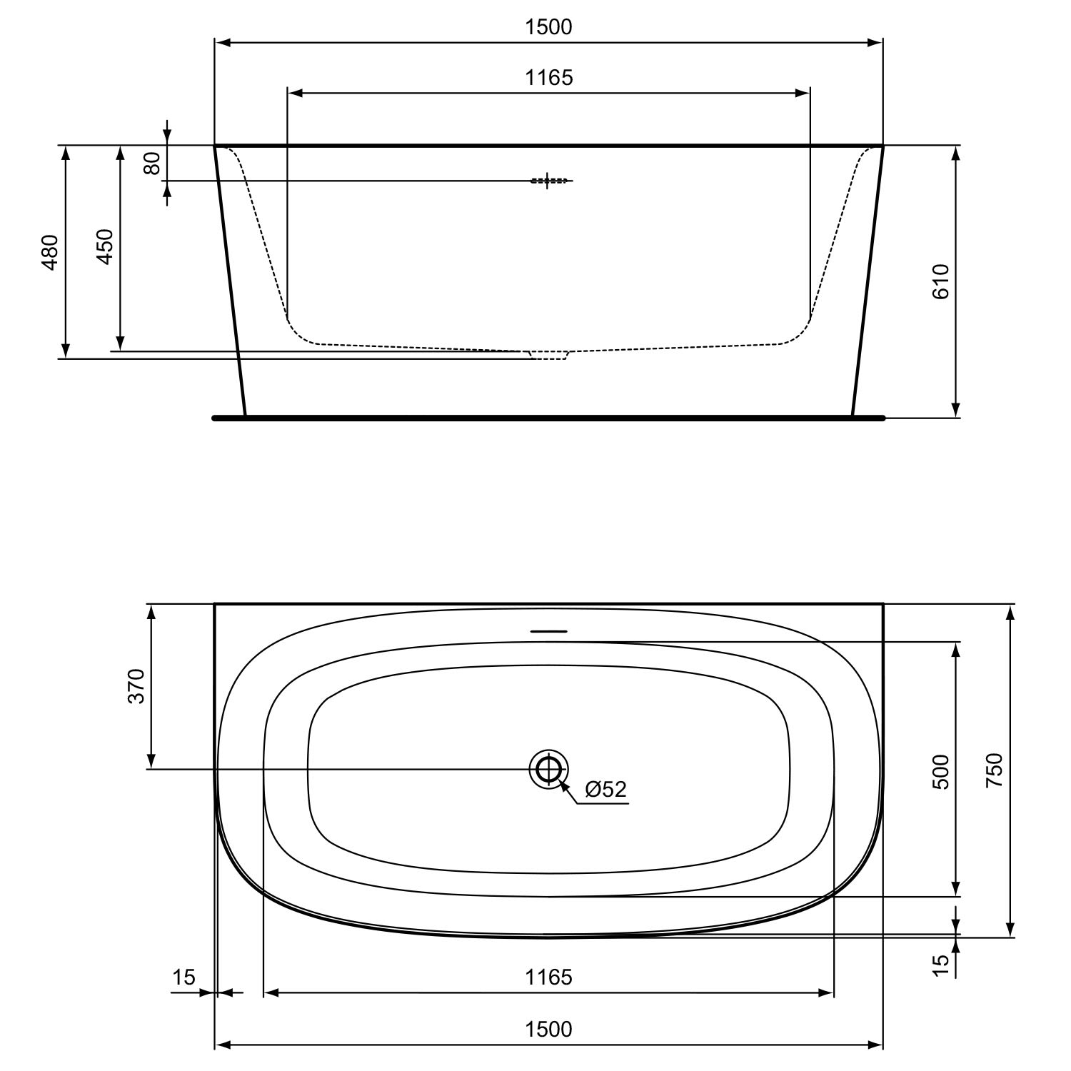 Ideal Standard Dea D-Form-Badewanne 150 x 75 cm