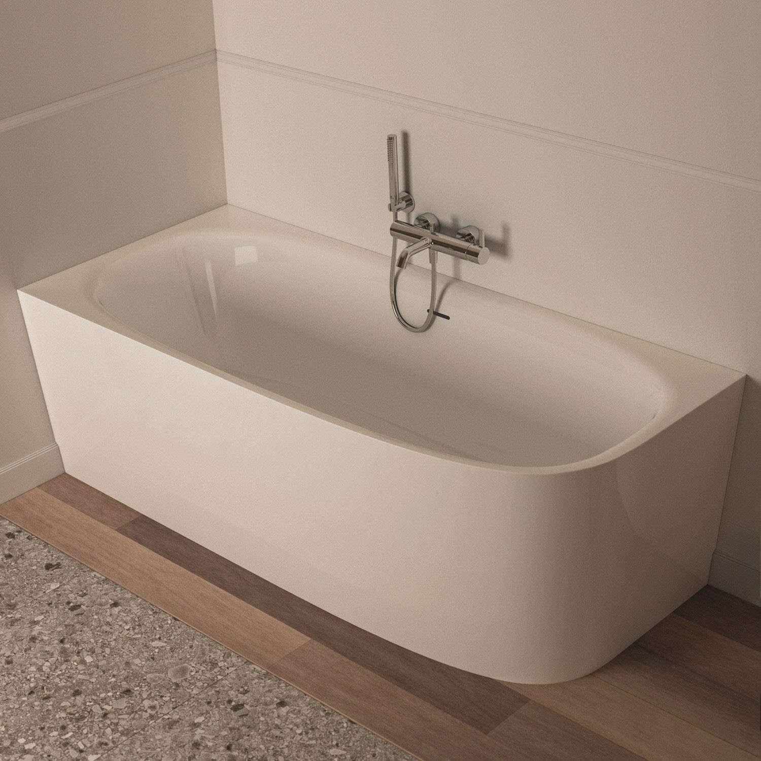 Ideal Standard Dea D-Form-Badewanne 180 x 80 cm, Wandanbindung links