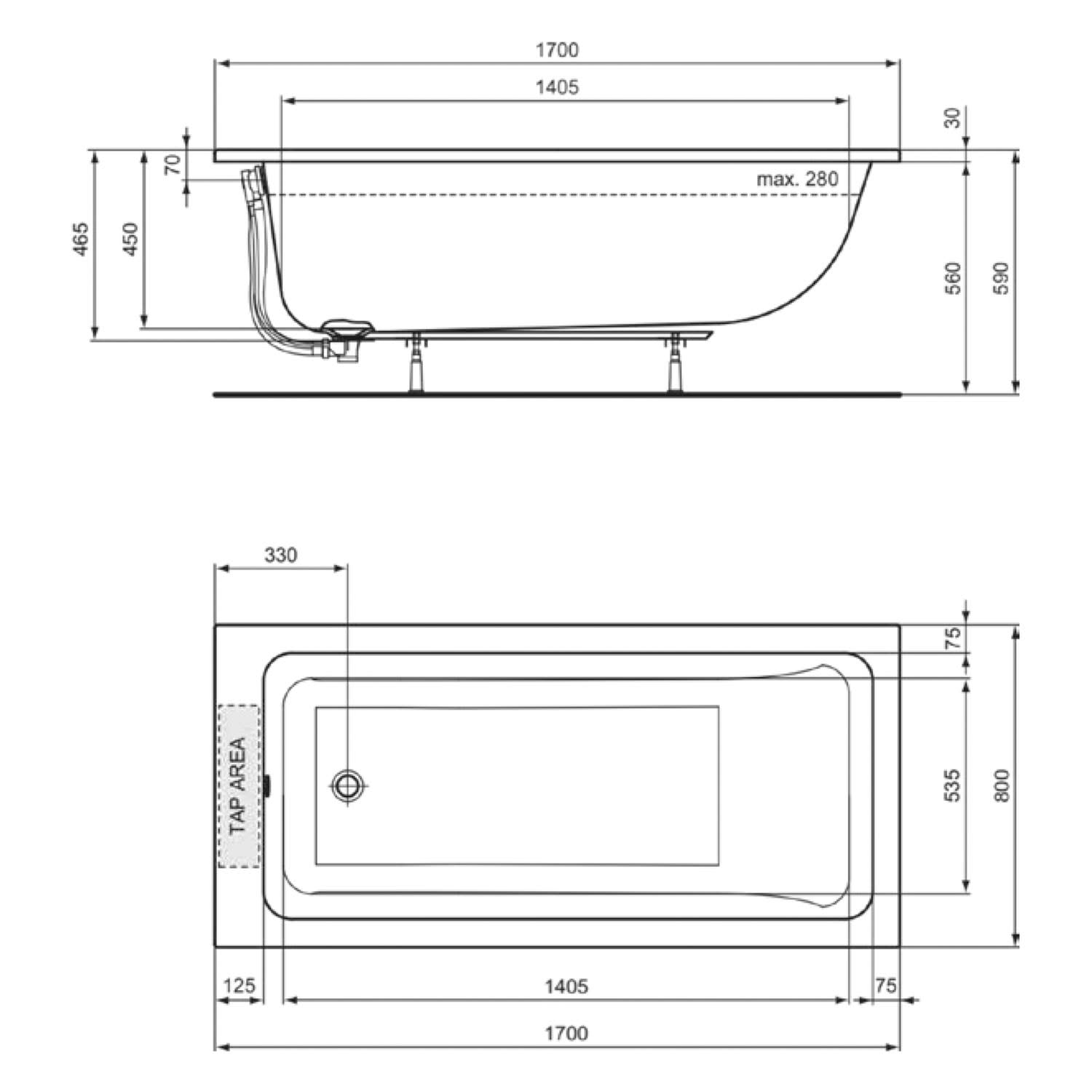 Ideal Standard La Dolce Vita Duo-Badewanne 170 x 80 cm