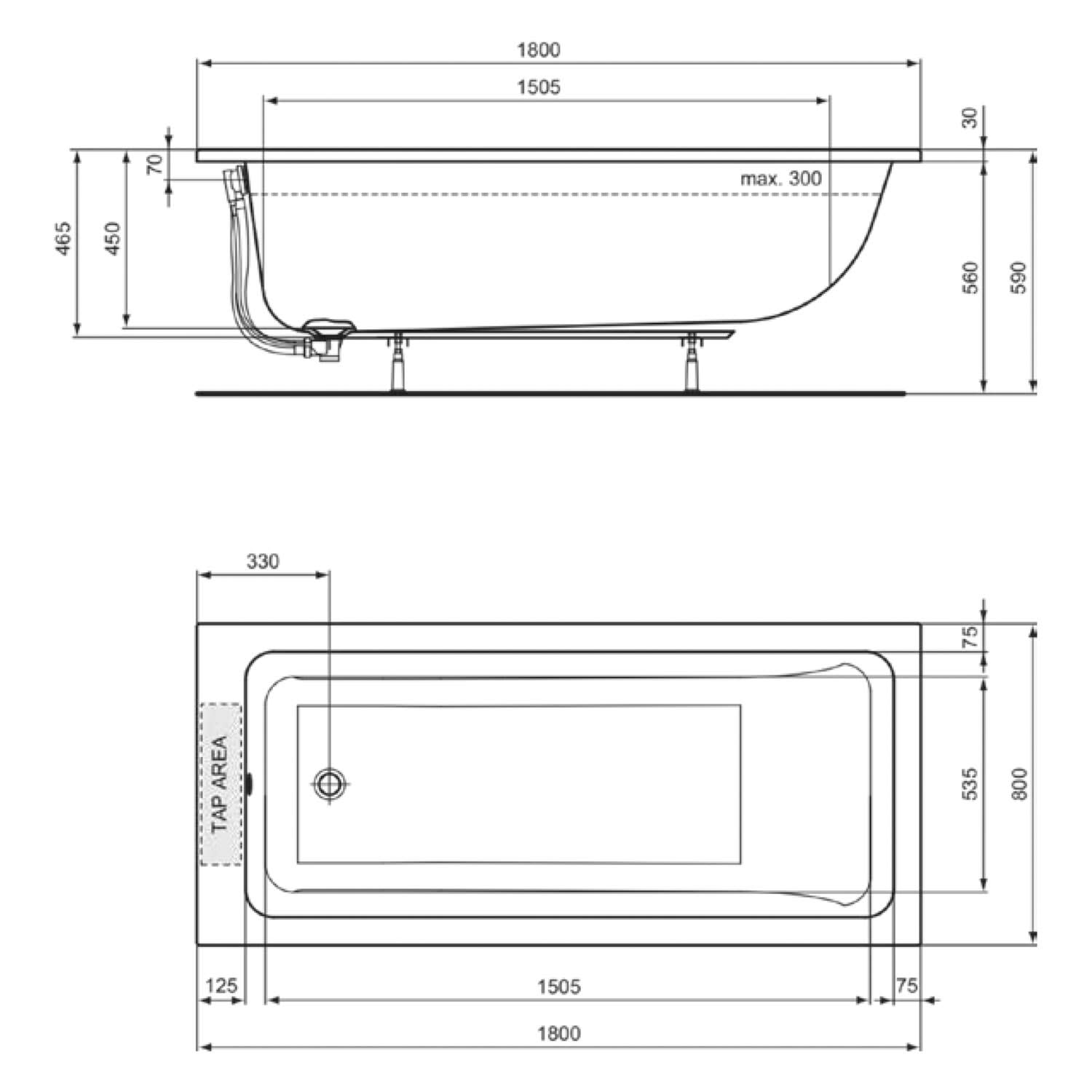 Ideal Standard La Dolce Vita Duo-Badewanne 180 x 80 cm, Ablauf: Fußende