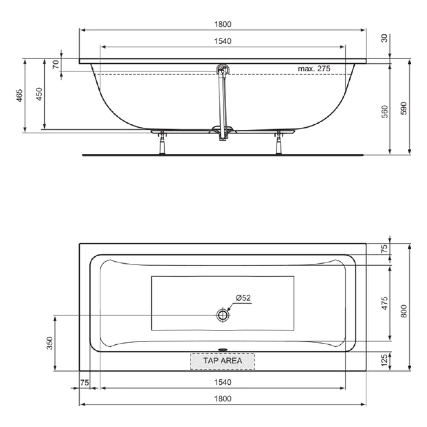 Ideal Standard La Dolce Vita Duo-Badewanne 180 x 80 cm, Ablauf: Mitte