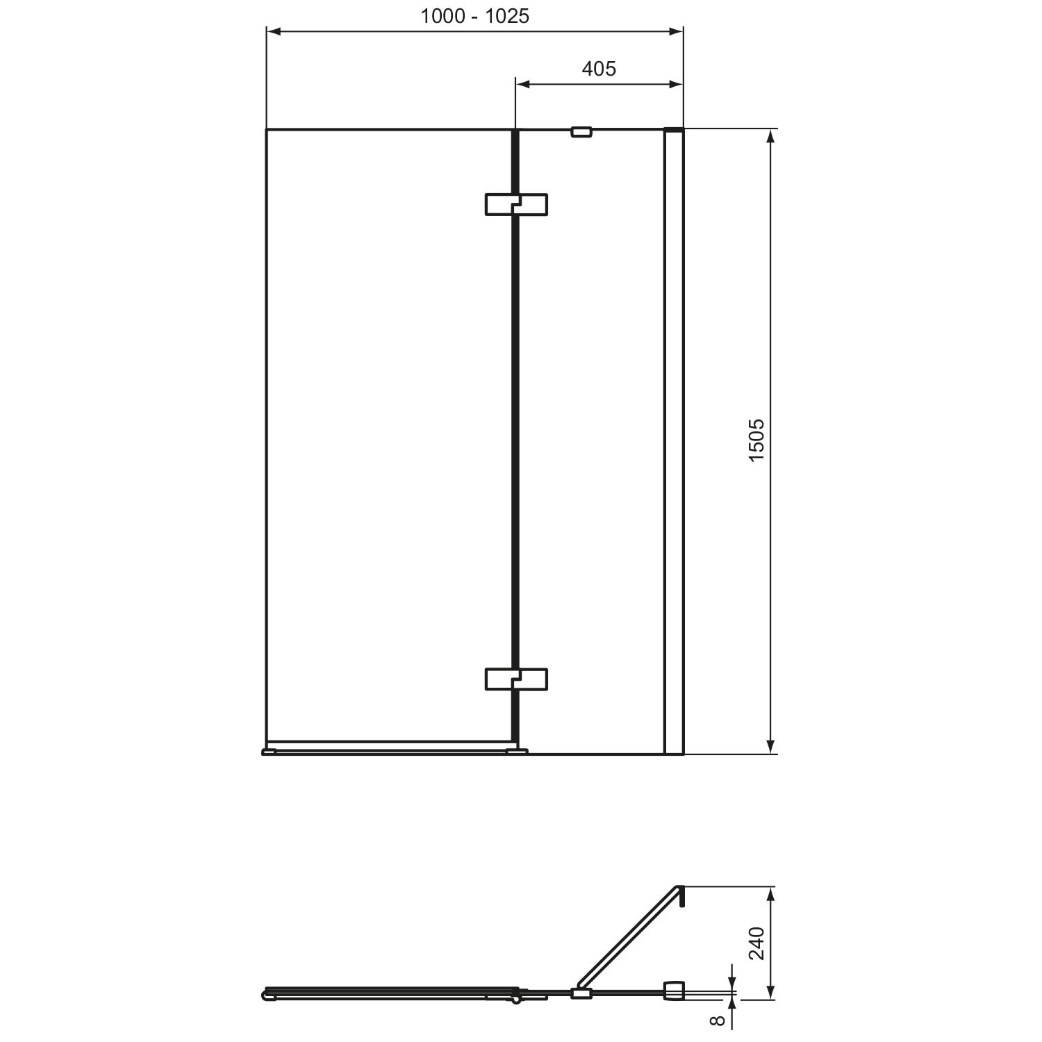 Ideal Standard i.life Duschwand mit Tür für Badewanne 100 cm, Anschlag rechts