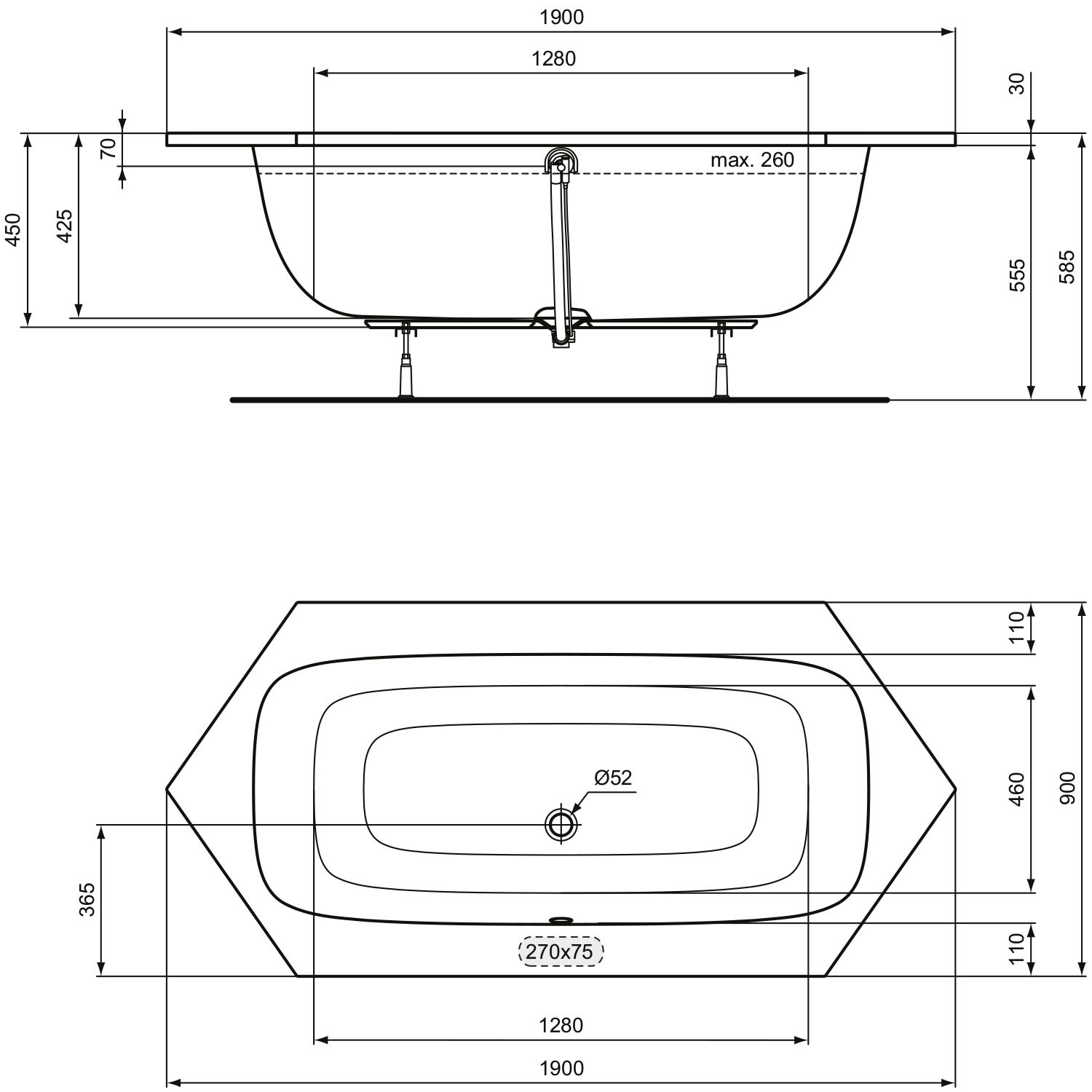Ideal Standard i.life Sechseck-Badewanne 190 x 90 cm