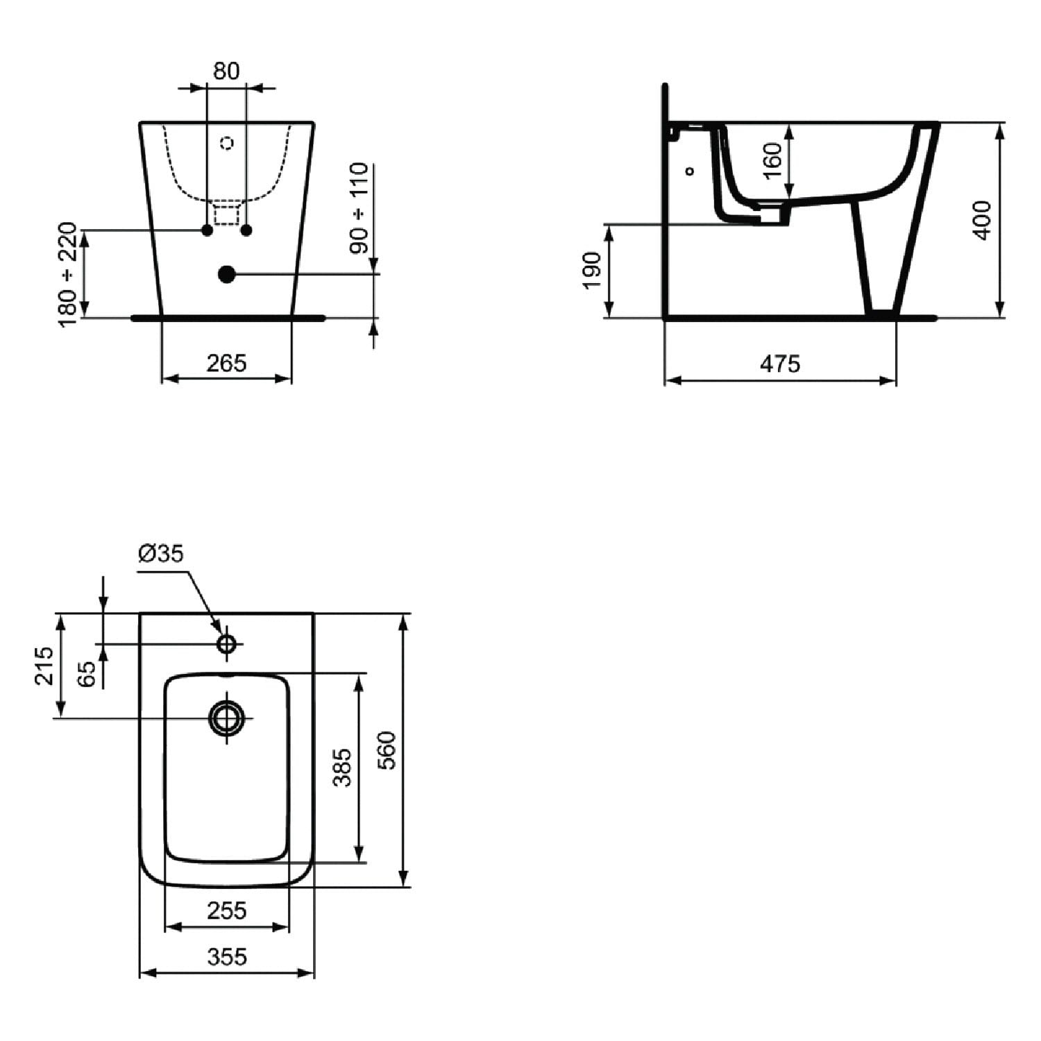 Ideal Standard Blend Cube Stand-Bidet 1 Hahnloch