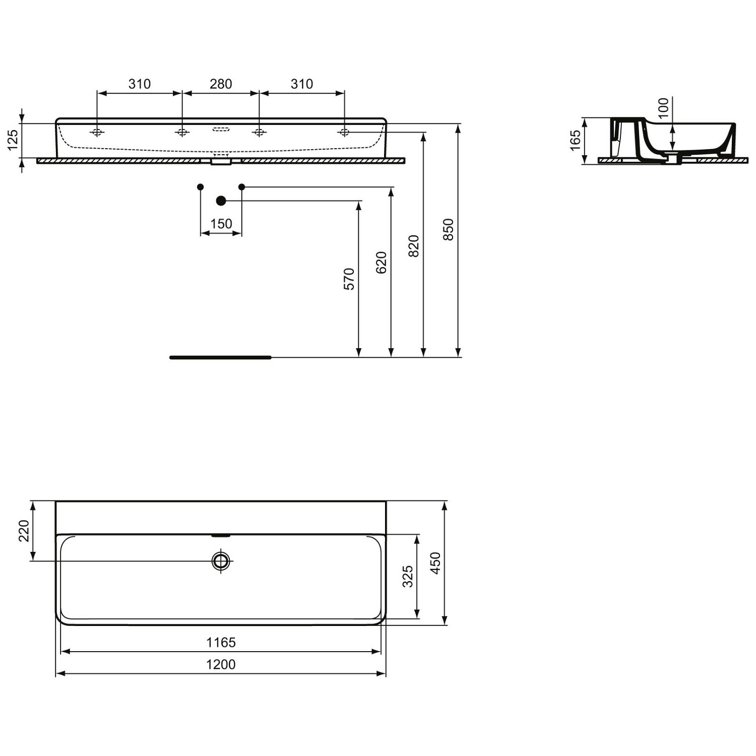 Ideal Standard Conca Waschtisch 120 cm, ohne Hahnloch, mit Überlauf