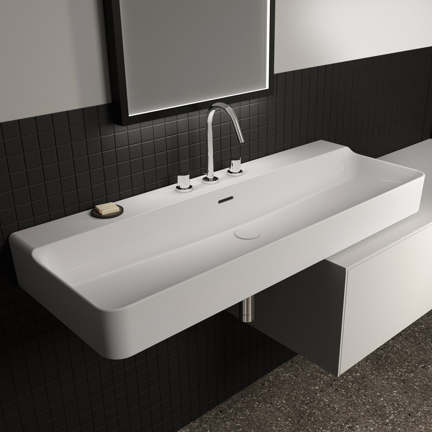 3 Hahnlöcher mittig, mit Überlauf