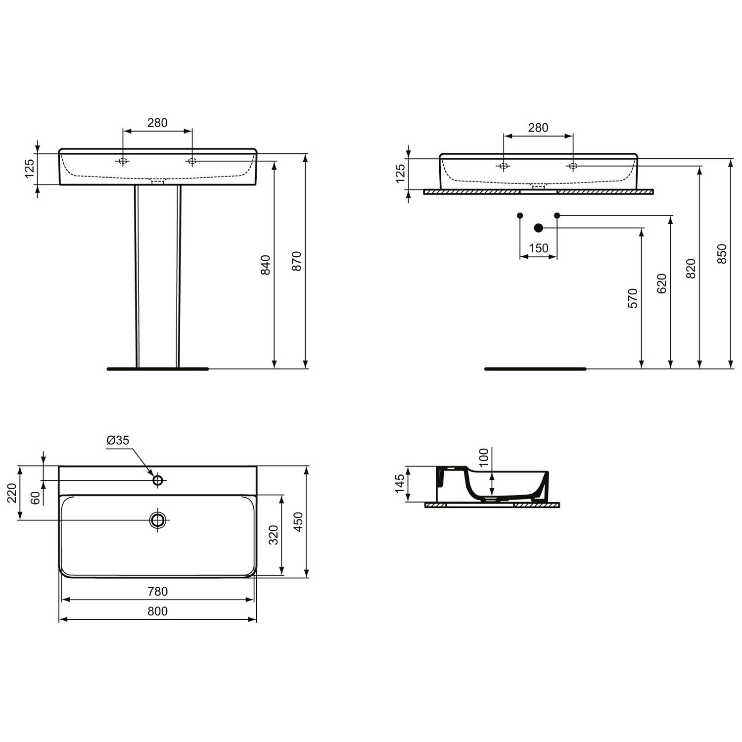 Ideal Standard Conca Waschtisch 80 cm, 1 Hahnloch, ohne Überlauf