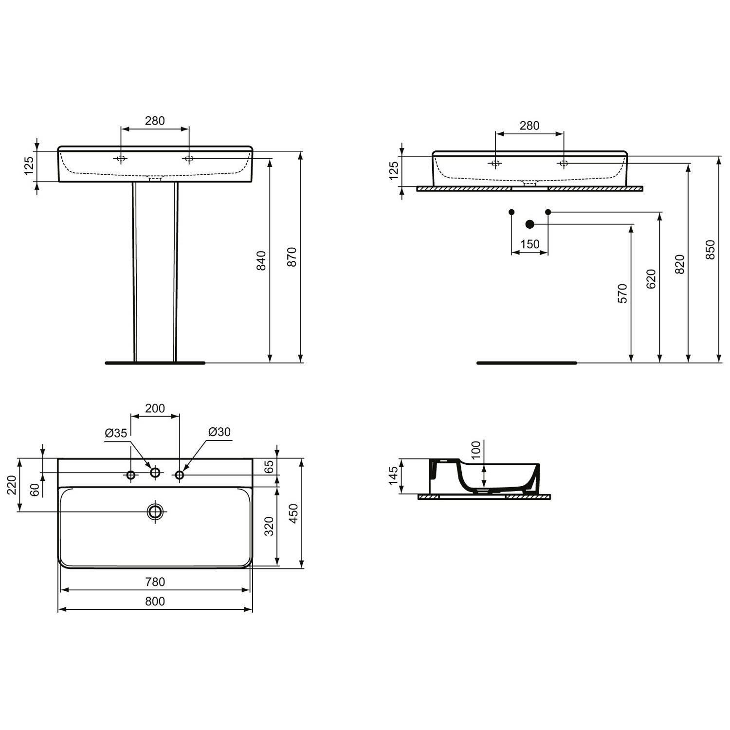 Ideal Standard Conca Waschtisch 80 cm, 3 Hahnlöcher, ohne Überlauf