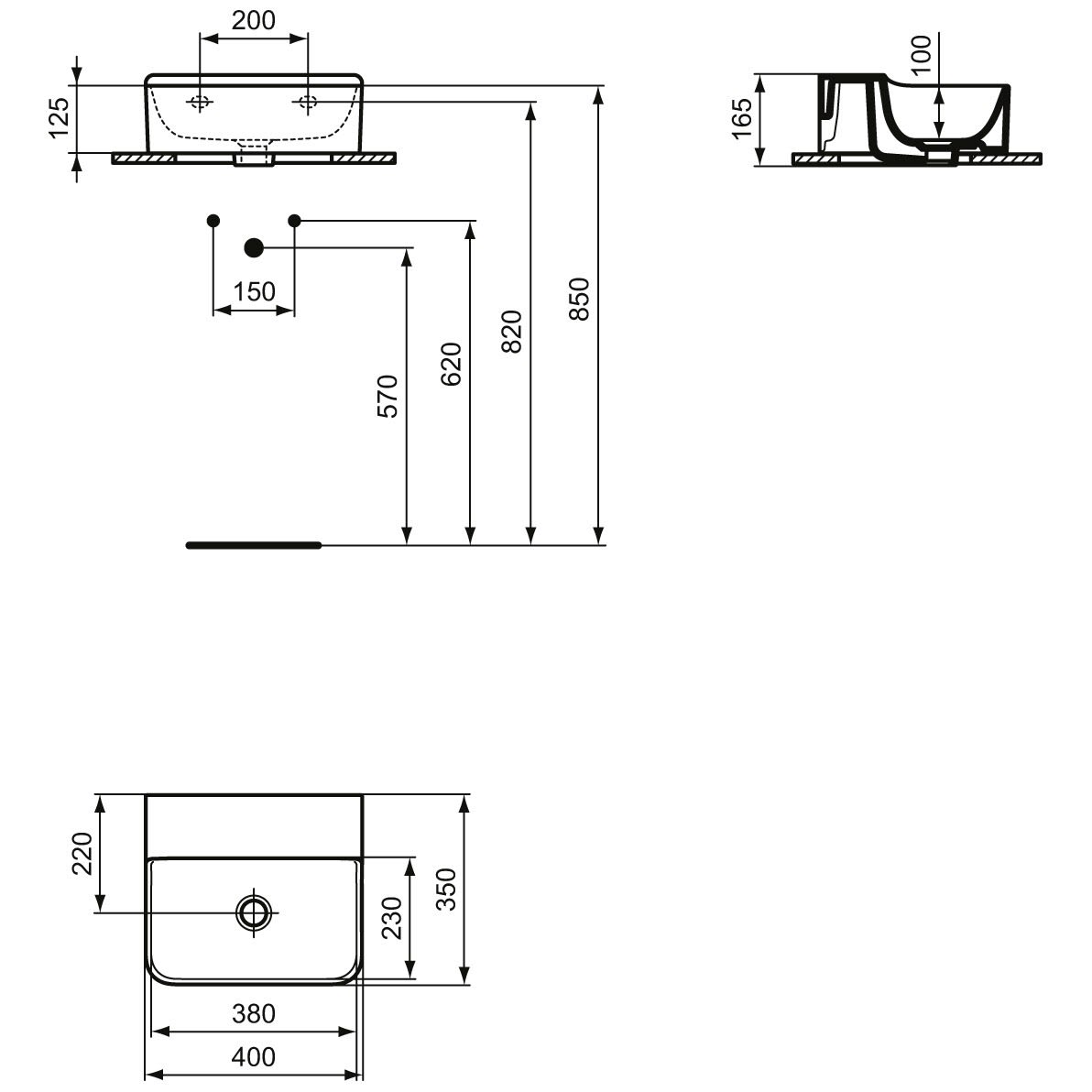 Ideal Standard Conca Handwaschbecken 40 cm, ohne Hahnloch, ohne Überlauf