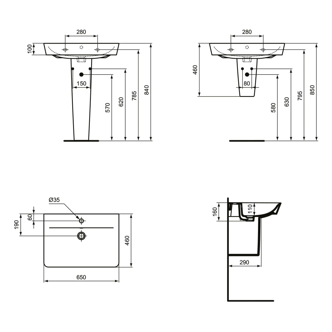 - mit Überlauf (rundes Überlaufloch)