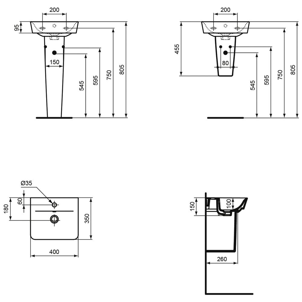 Ideal Standard Connect Air Handwaschbecken 40 cm, mit 1 Hahnloch, mit Überlauf