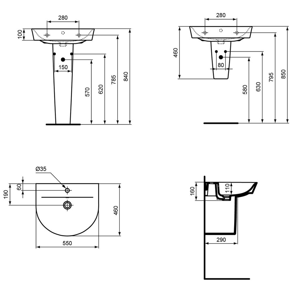 Ideal Standard Connect Air Waschtisch 55 cm, mit 1 Hahnloch, mit Überlauf