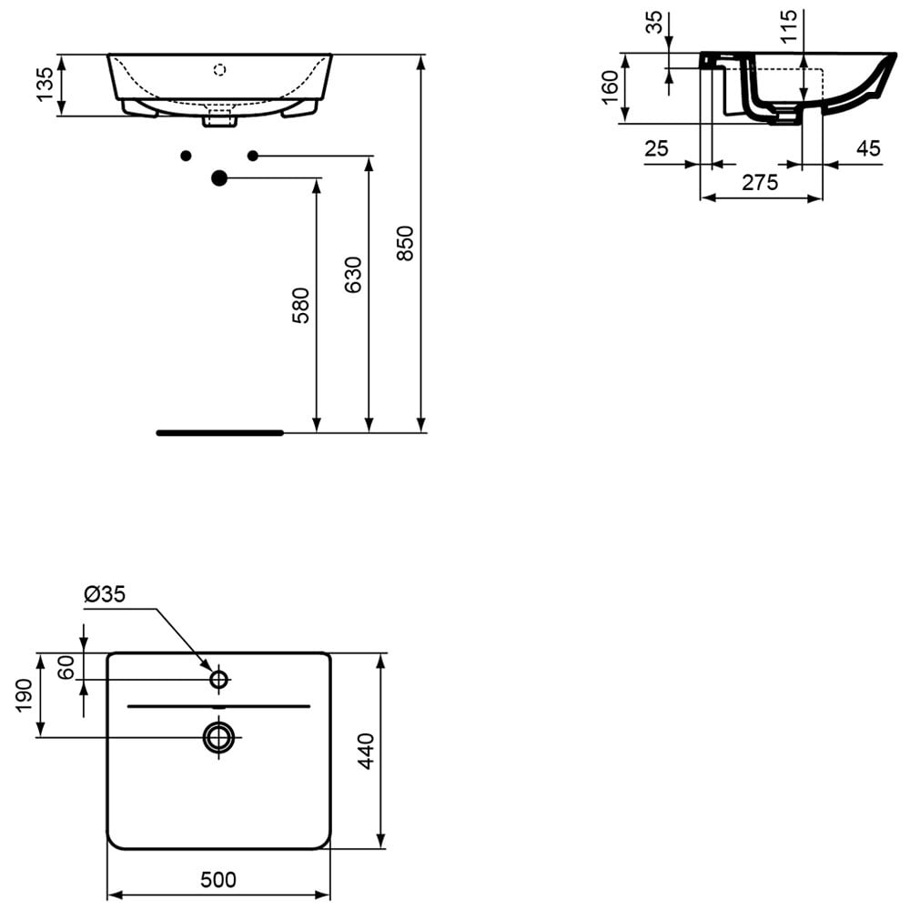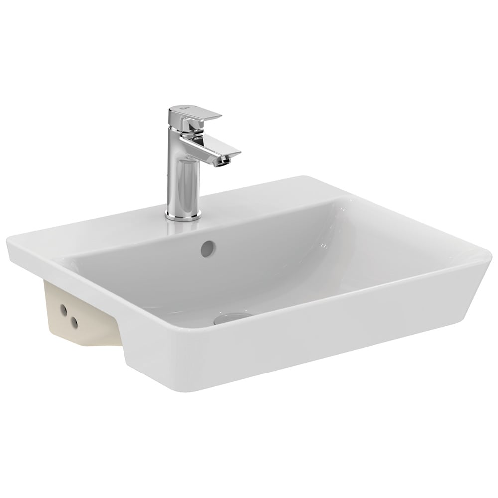 Ideal Standard Connect Air Halbeinbauwaschtisch 50 cm, mit 1 Hahnloch, mit Überlauf