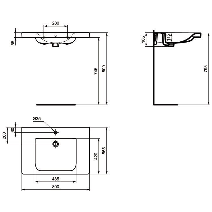 Ideal Standard Connect Freedom Waschtisch 80 x 55 cm, unterfahrbar und mit Überlauf