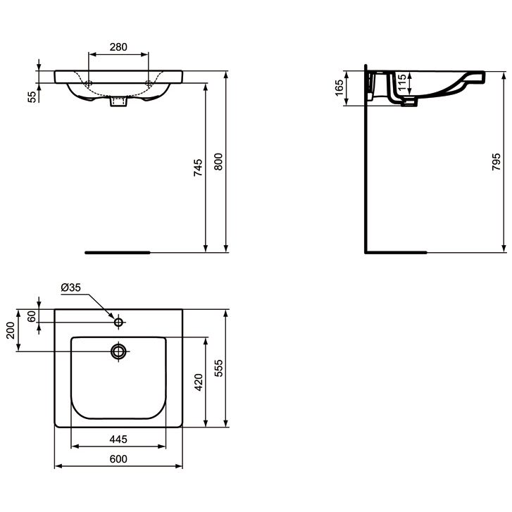 Ideal Standard Connect Freedom Waschtisch 60 x 55 cm, unterfahrbar und ohne Überlauf