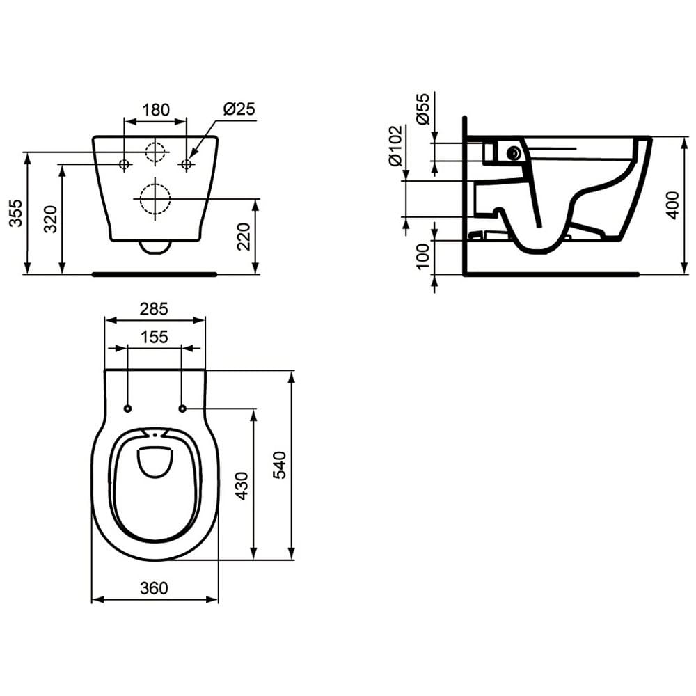 Ideal Standard Connect Wand-WC spülrandlos Kombipaket mit WC-Sitz