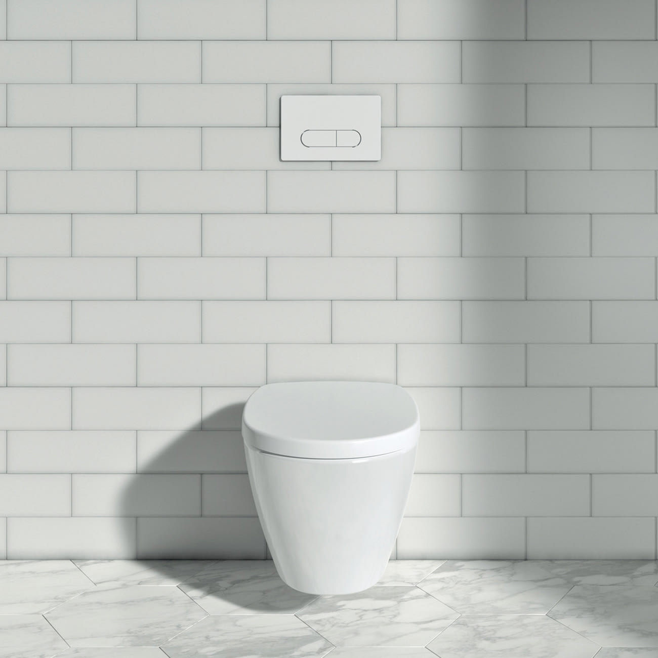- Wandhängend mit halbverdecktem Siphon und offener Befestigung