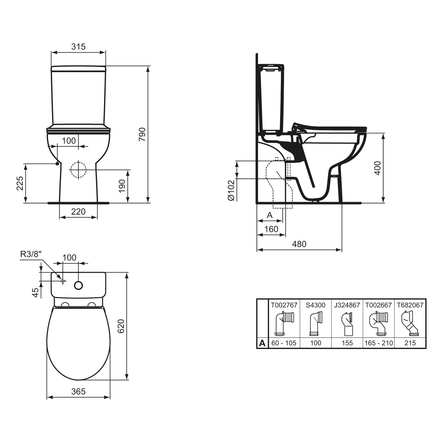 Ideal Standard Eurovit WC-Paket mit Standtiefspül-WC, Spülkasten Zulauf unten und WC-Sitz