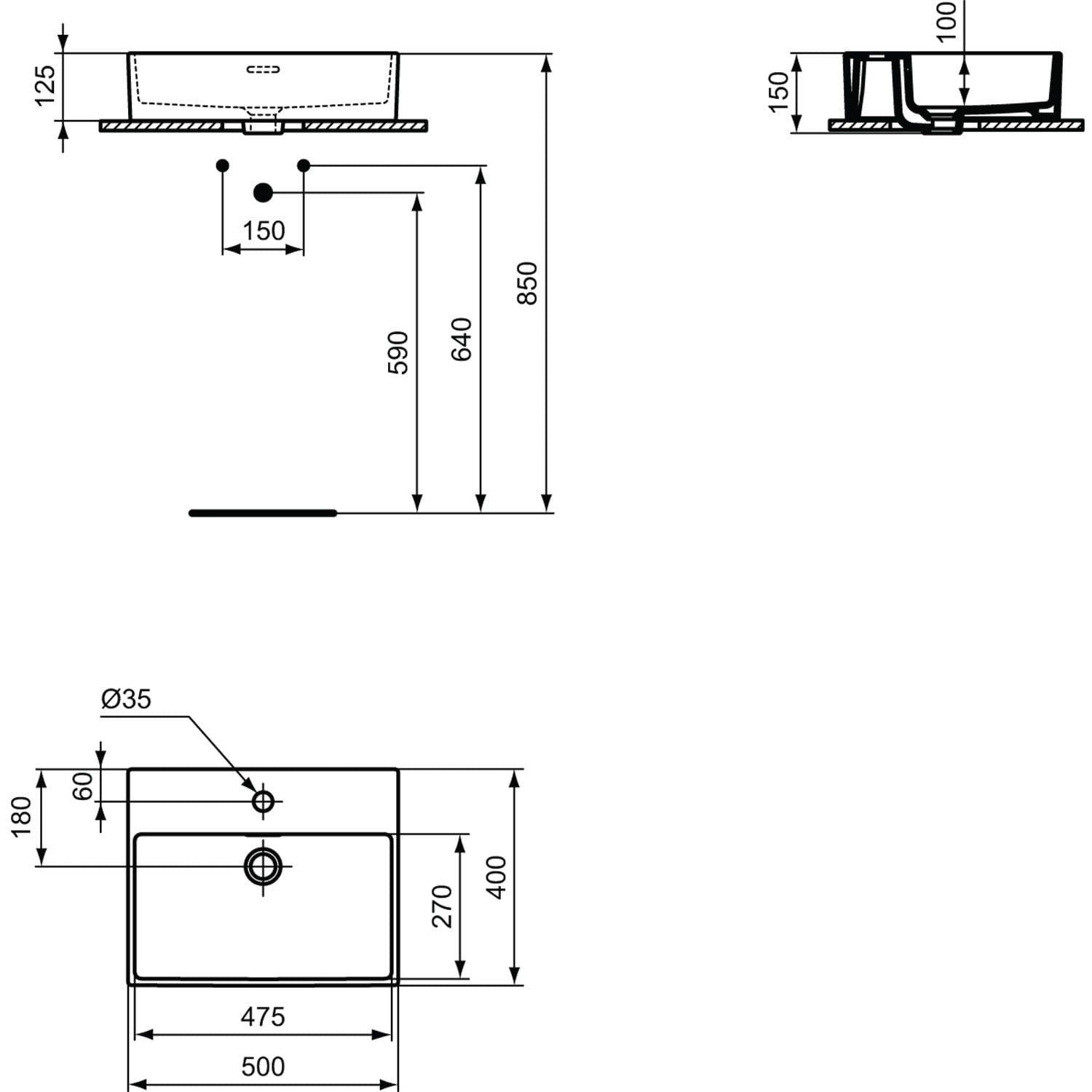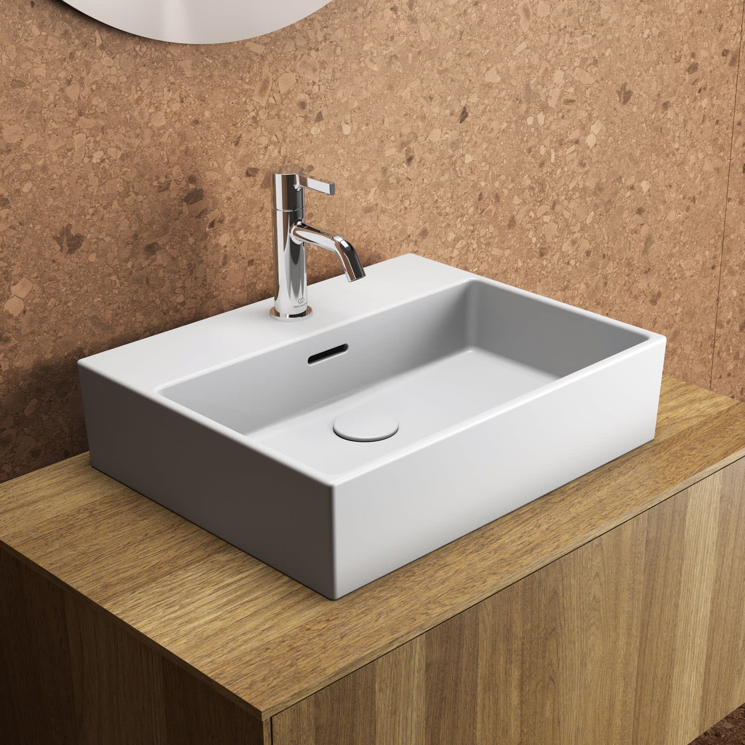 Ideal Standard Extra Aufsatzschale eckig 50 cm, mit Hahnloch, mit Überlauf, geschliffen