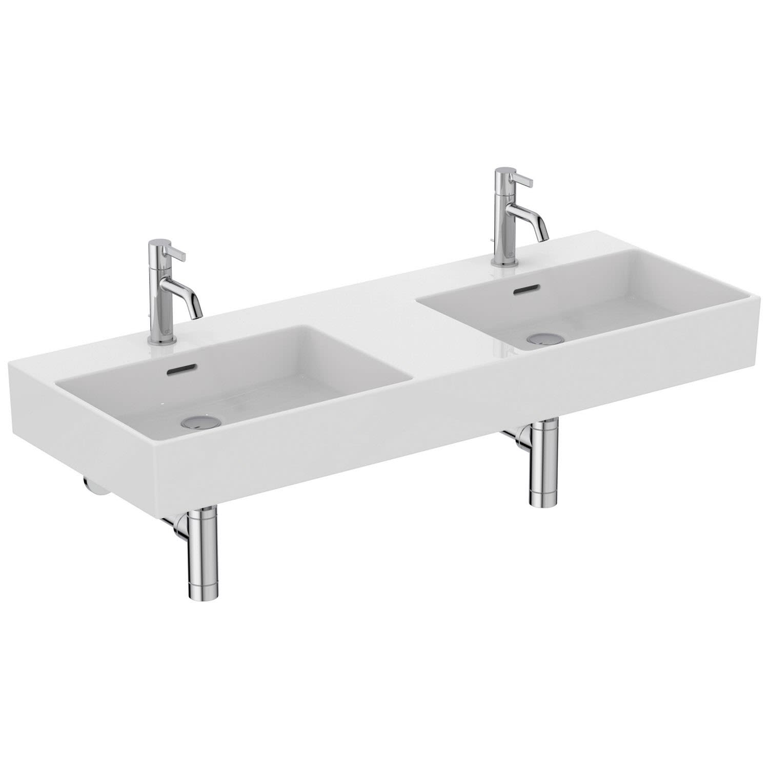 Ideal Standard Extra Doppel-Waschtisch 120 cm, je 1 Hahnloch, mit Überlauf