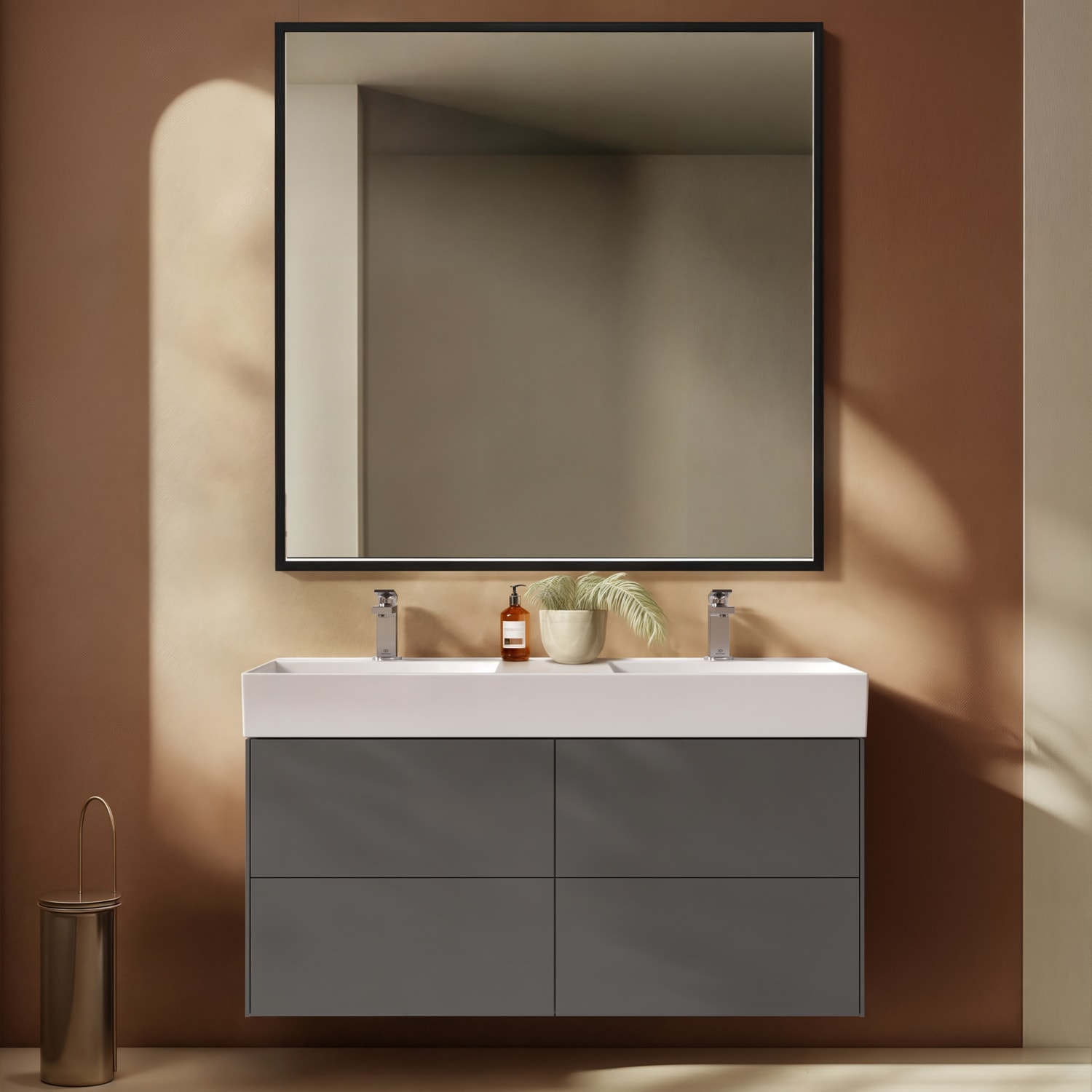 Der Extra Doppelwaschtisch von Ideal Standard überzeugt durch sein klares, quadratisches Design und schafft so eine moderne, offene Atmosphäre in jedem Badezimmer. Mit einer Gesamtbreite von 101,5 cm bietet der Waschtisch viel Platz für die tägliche Pflegeroutine für zwei Personen. Jedes der beiden Becken verfügt über ein eigenes Hahnloch, was individuelle Gestaltungsmöglichkeiten ermöglicht. Der geschlitzte Überlauf sorgt für ein elegantes Detail. Gefertigt aus hochwertigem Feinfeuerton überzeugt der Waschtisch nicht nur durch seine zeitlose Ästhetik, sondern auch durch seine langlebige Qualität.