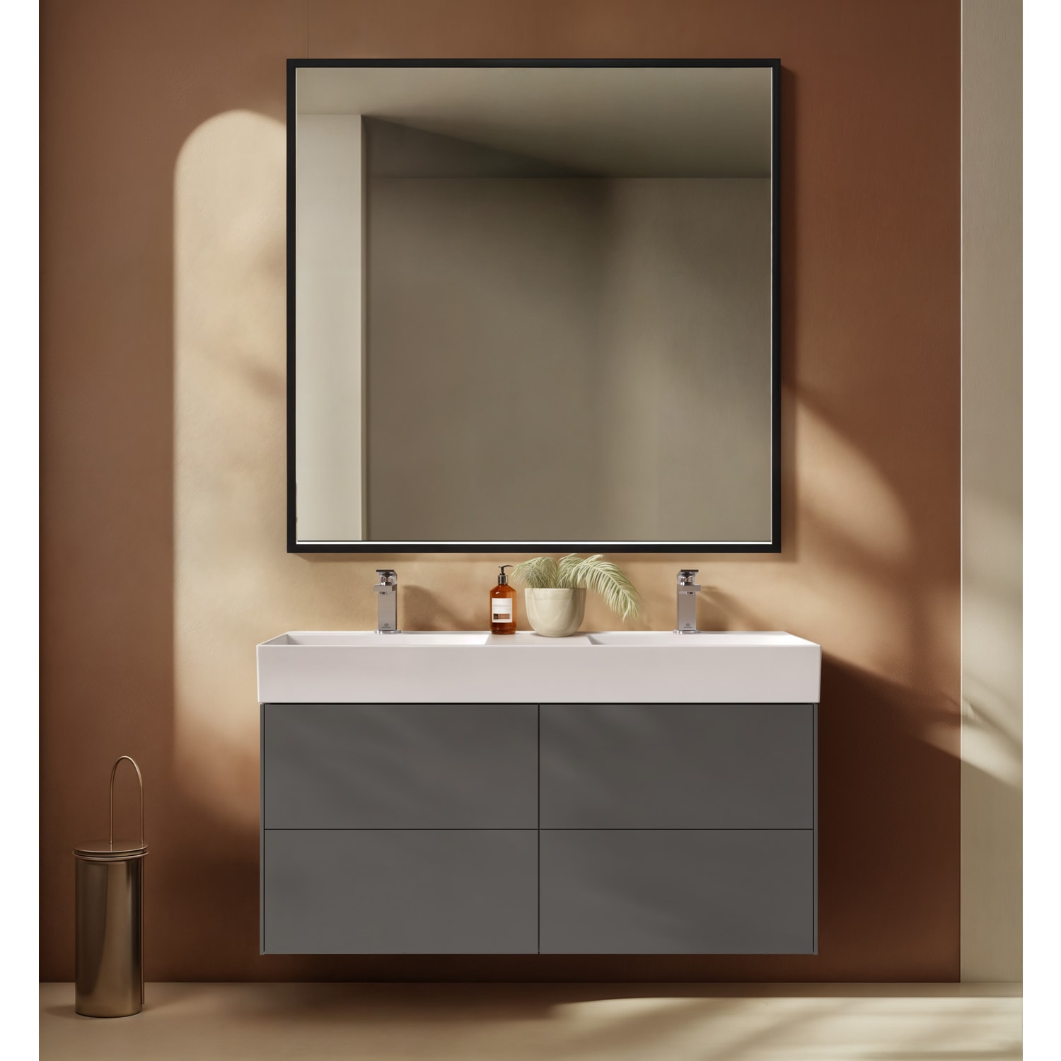 Der Extra Doppelwaschtisch von Ideal Standard überzeugt durch sein klares, quadratisches Design und schafft so eine moderne, offene Atmosphäre in jedem Badezimmer. Mit einer Gesamtbreite von 101,5 cm bietet der Waschtisch viel Platz für die tägliche Pflegeroutine für zwei Personen. Jedes der beiden Becken verfügt über ein eigenes Hahnloch, was individuelle Gestaltungsmöglichkeiten ermöglicht. Der geschlitzte Überlauf sorgt für ein elegantes Detail. Die geschliffene Unterseite sorgt für eine passgenaue Montage. Gefertigt aus hochwertigem Feinfeuerton überzeugt der Waschtisch nicht nur durch seine zeitlose Ästhetik, sondern auch durch seine langlebige Qualität.