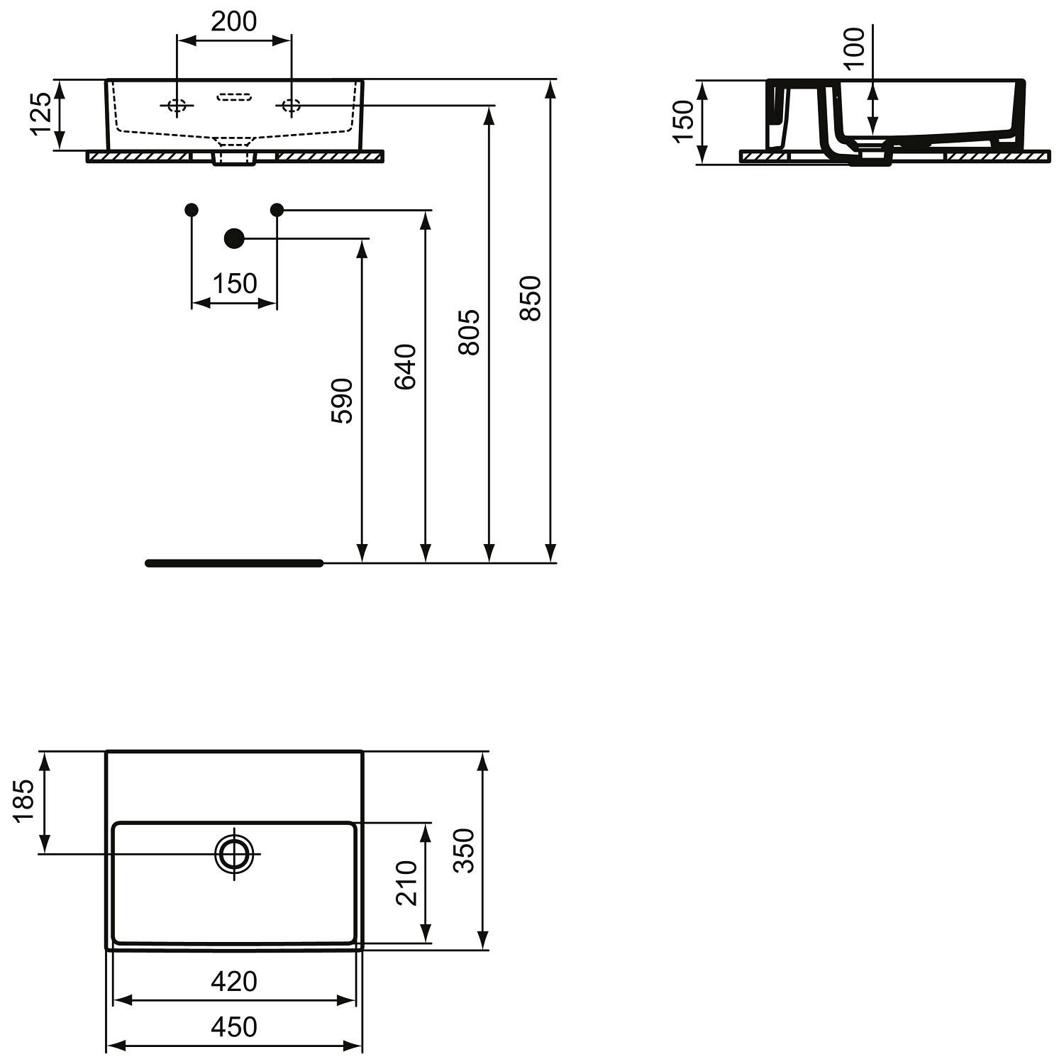 - mit Ablaufloch: Ø 4,5 cm