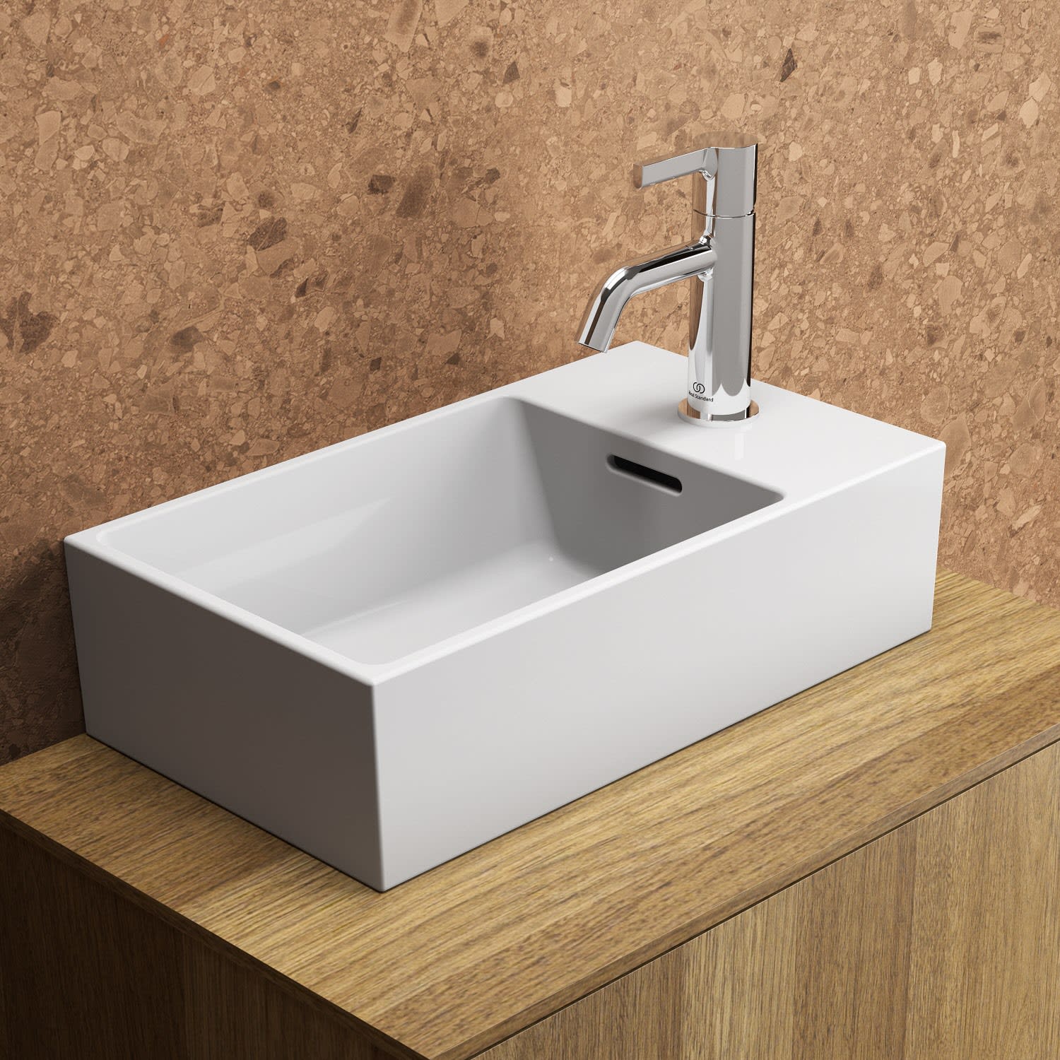 Ideal Standard Extra Handwaschbecken 45 cm, Hahnbank rechts, 1 Hahnloch, mit Überlauf