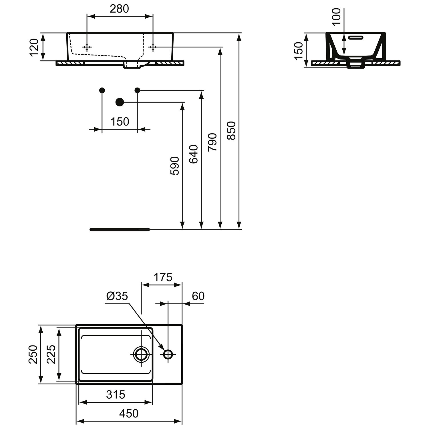 - mit Ablaufloch: Ø 4,5 cm
