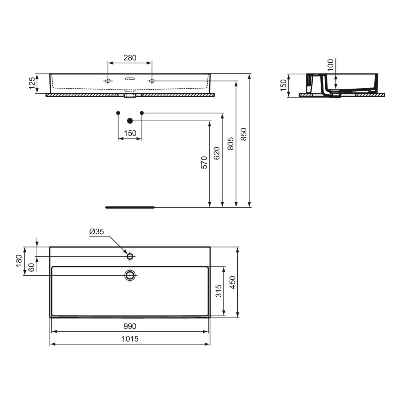 Ideal Standard Conca Waschtisch 100 cm, 1 Hahnloch, mit Überlauf