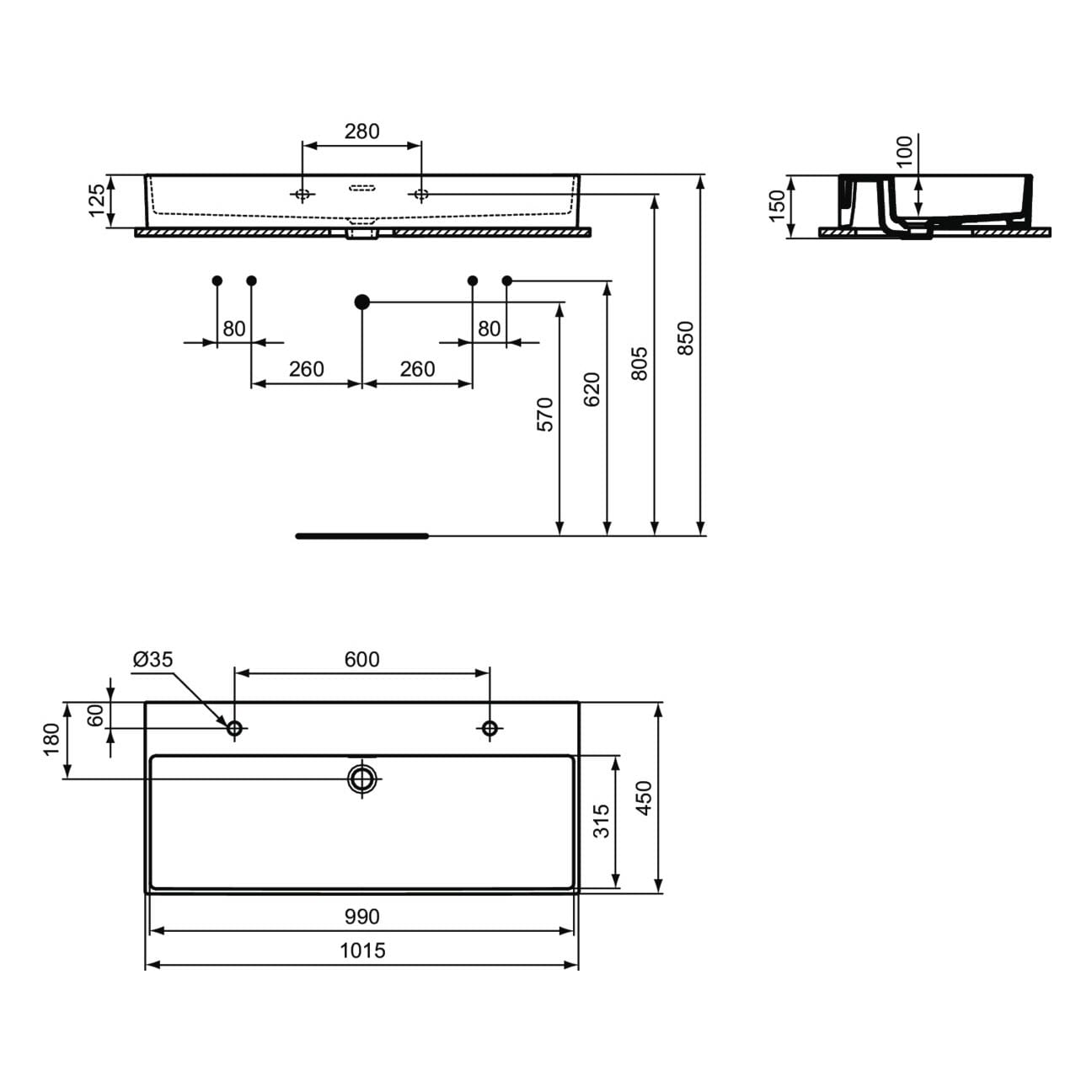 Ideal Standard Extra Waschtisch 101,5 cm, je 1 Hahnloch mit Überlauf
