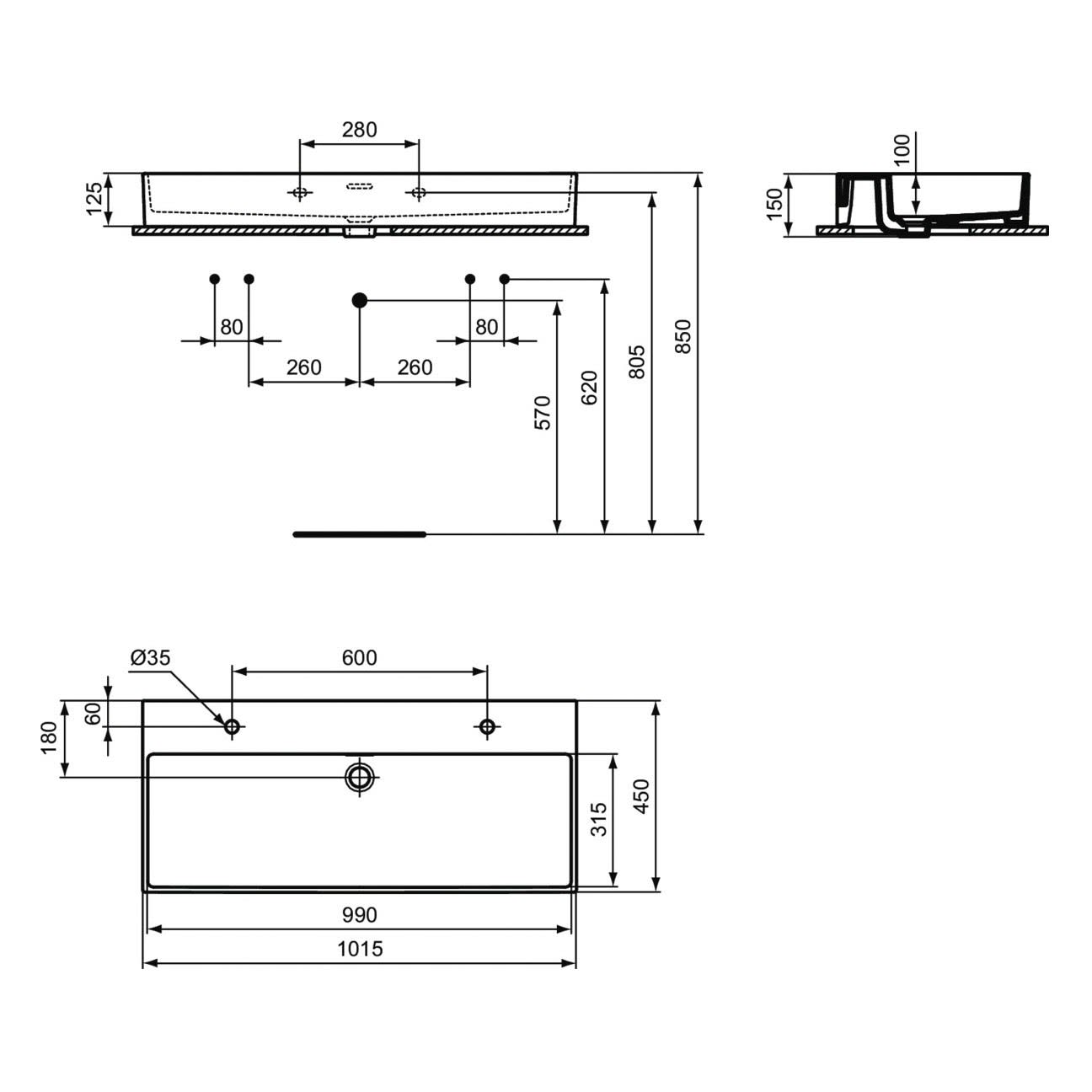 Der Extra Waschtisch von Ideal Standard überzeugt durch sein klares, quadratisches Design und schafft so eine moderne, offene Atmosphäre in jedem Badezimmer. Mit seiner Breite von 101,5 cm bietet der Waschtisch viel Raum für Ihre tägliche Pflegeroutine. Dank der zwei Hahnlöcher rechts und links sind vielfältige Armaturenoptionen möglich. Der geschlitzte Überlauf setzt dabei ein elegantes Detail. Die geschliffene Unterseite sorgt für eine passgenaue Montage. Gefertigt aus hochwertigem Feinfeuerton überzeugt der Waschtisch nicht nur durch seine zeitlose Ästhetik, sondern auch durch seine langlebige Qualität.