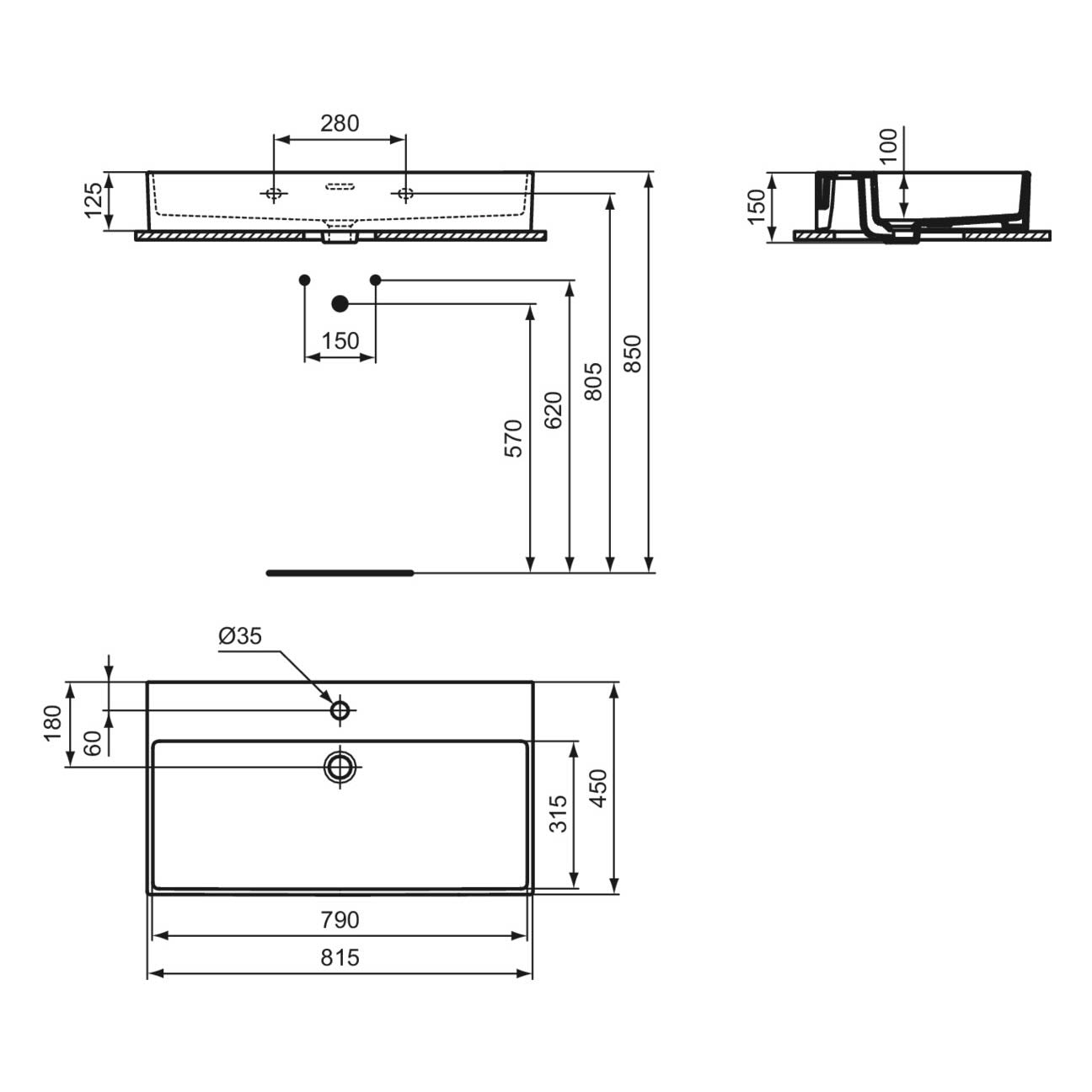 Der Extra Waschtisch von Ideal Standard überzeugt durch sein klares, quadratisches Design und schafft so eine moderne, offene Atmosphäre in jedem Badezimmer. Mit seiner Breite von 81,5 cm bietet der Waschtisch viel Raum für Ihre tägliche Pflegeroutine. Das zentrale Hahnloch ermöglicht individuelle Gestaltungsmöglichkeiten, während der geschlitzte Überlauf für ein elegantes Detail sorgt. Die geschliffene Unterseite sorgt für eine passgenaue Montage. Gefertigt aus hochwertigem Feinfeuerton überzeugt der Waschtisch nicht nur durch seine zeitlose Ästhetik, sondern auch durch seine langlebige Qualität.