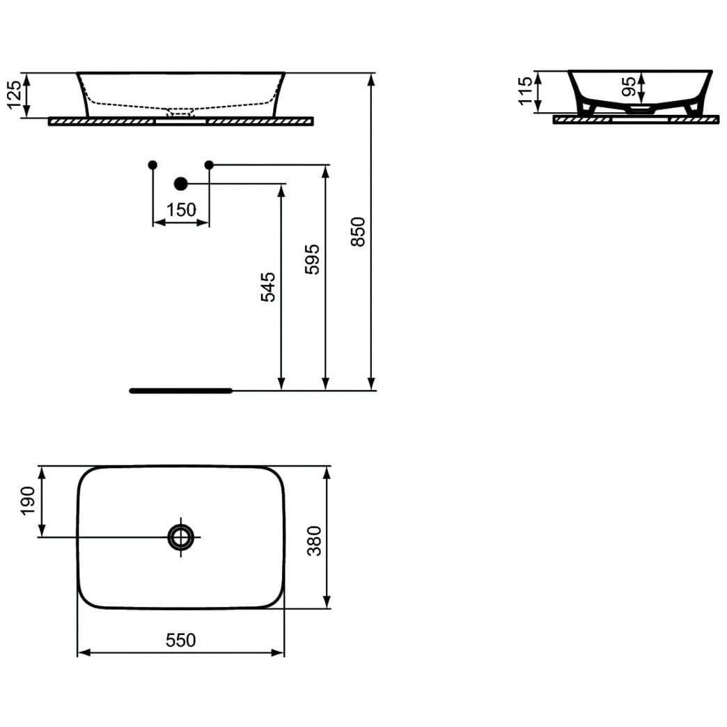 Ideal Standard Ipalyss Aufsatzschale eckig ohne Überlauf, ohne Überlauf 55 x 38 cm