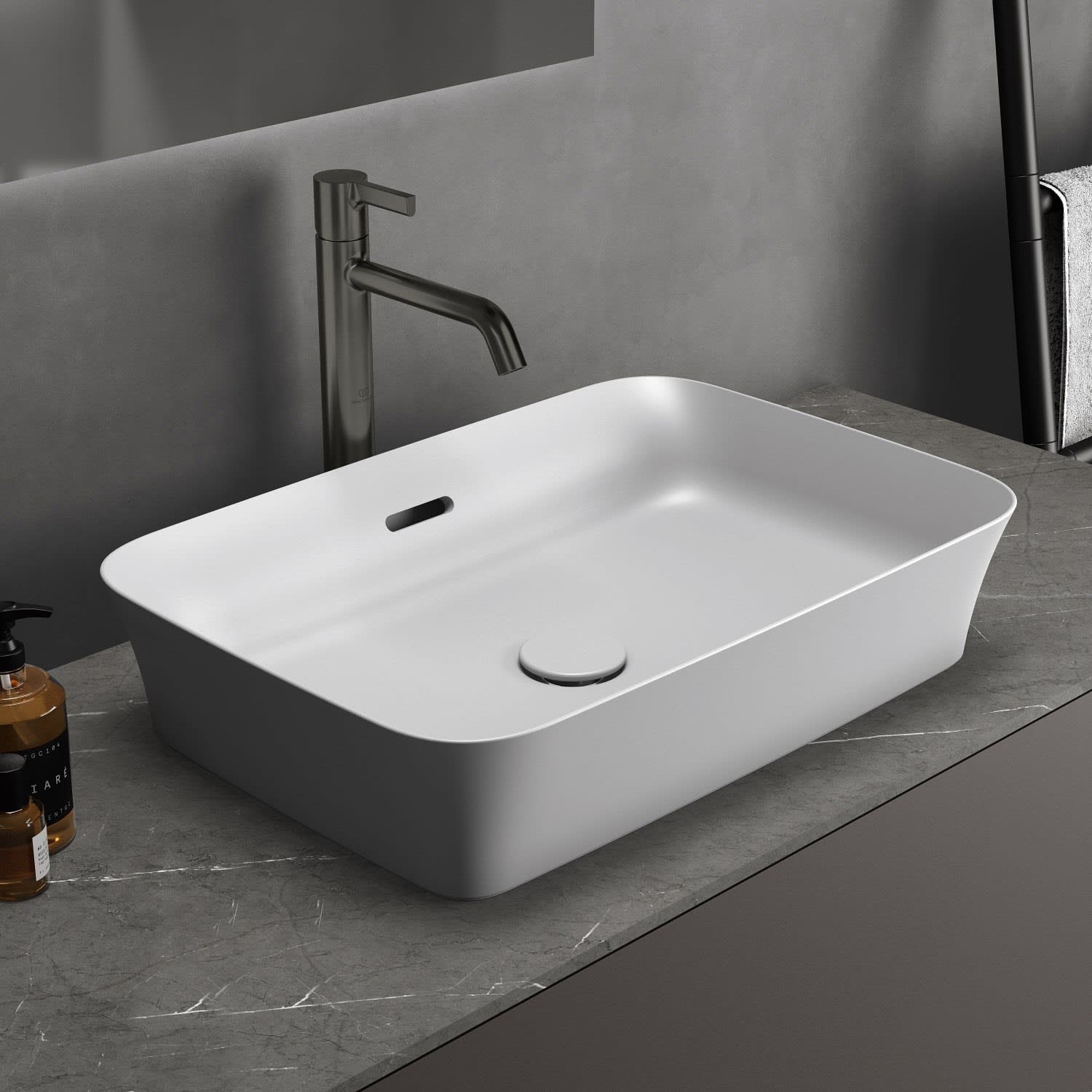 Ideal Standard Ipalyss Aufsatzschale eckig mit Überlauf, ohne Hahnloch 55 x 38 cm