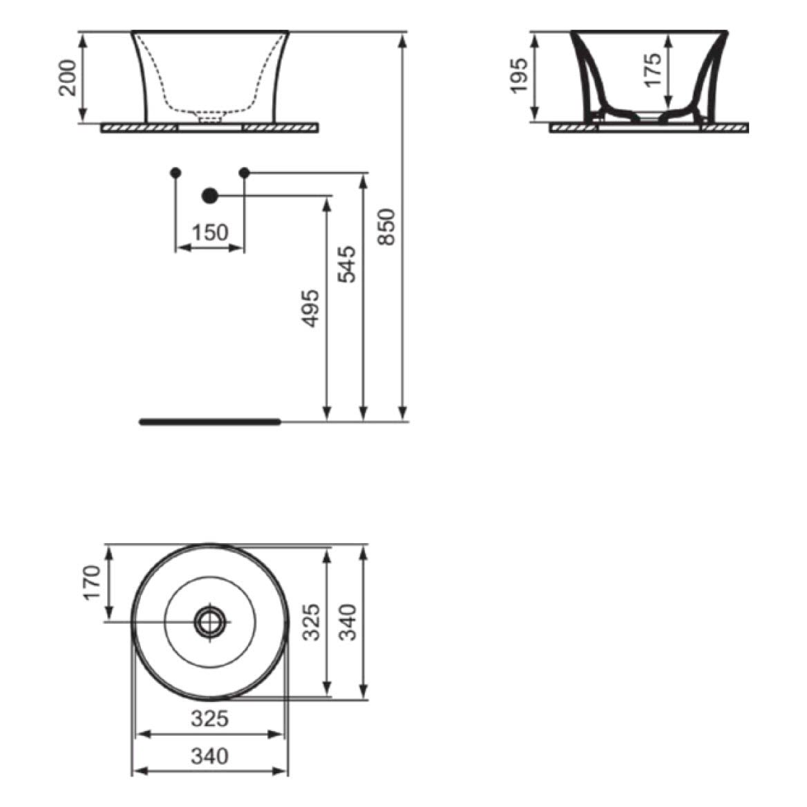 Ideal Standard La Dolce Vita Schale rund 34 cm, ohne Hahnloch, ohne Überlauf, mit Ideal Plus