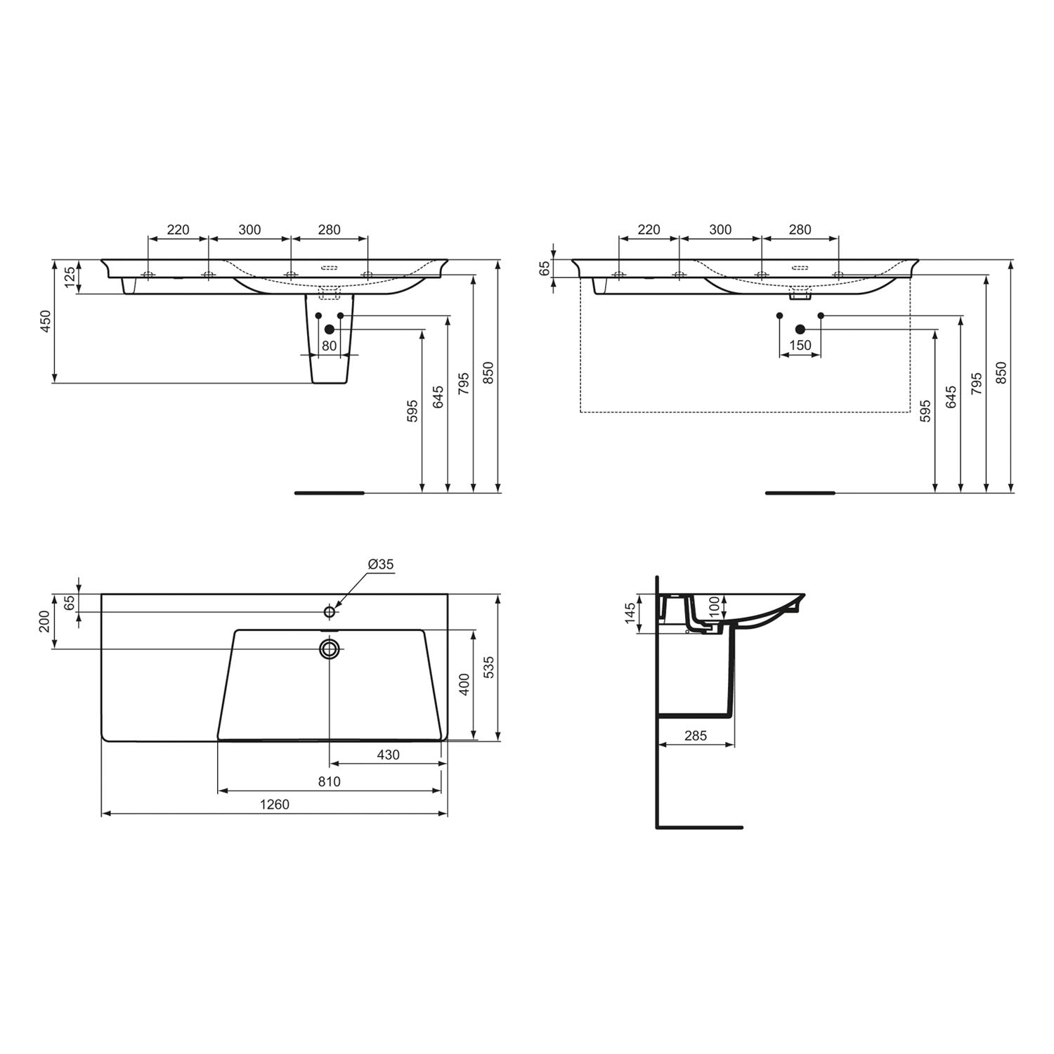 Ideal Standard La Dolce Vita Möbelwaschtisch 126 cm, mit 1 Hahnloch, mit Überlauf, Ablage links