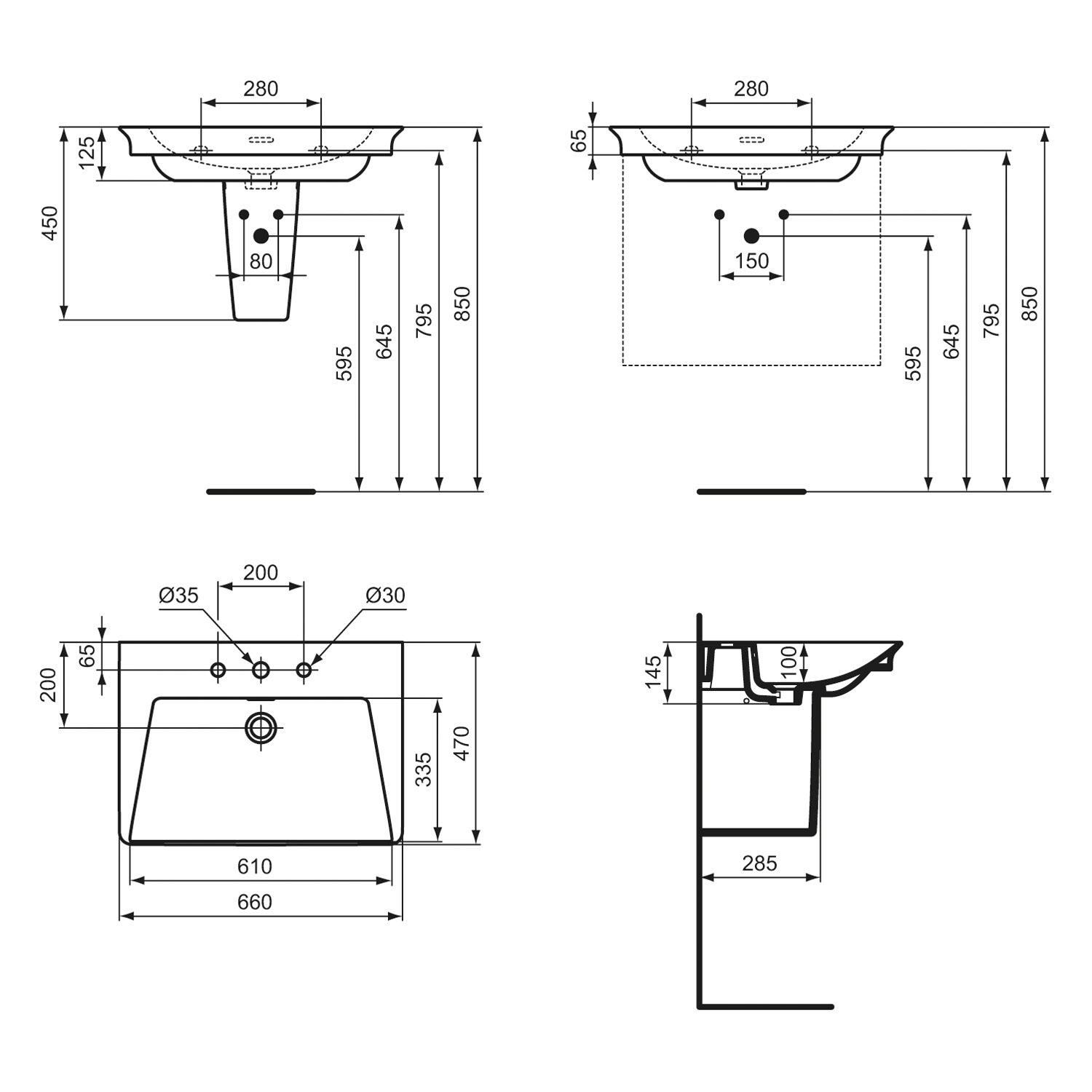 Ideal Standard La Dolce Vita Möbelwaschtisch 66 cm, mit 3 Hahnlöchern, mit Überlauf