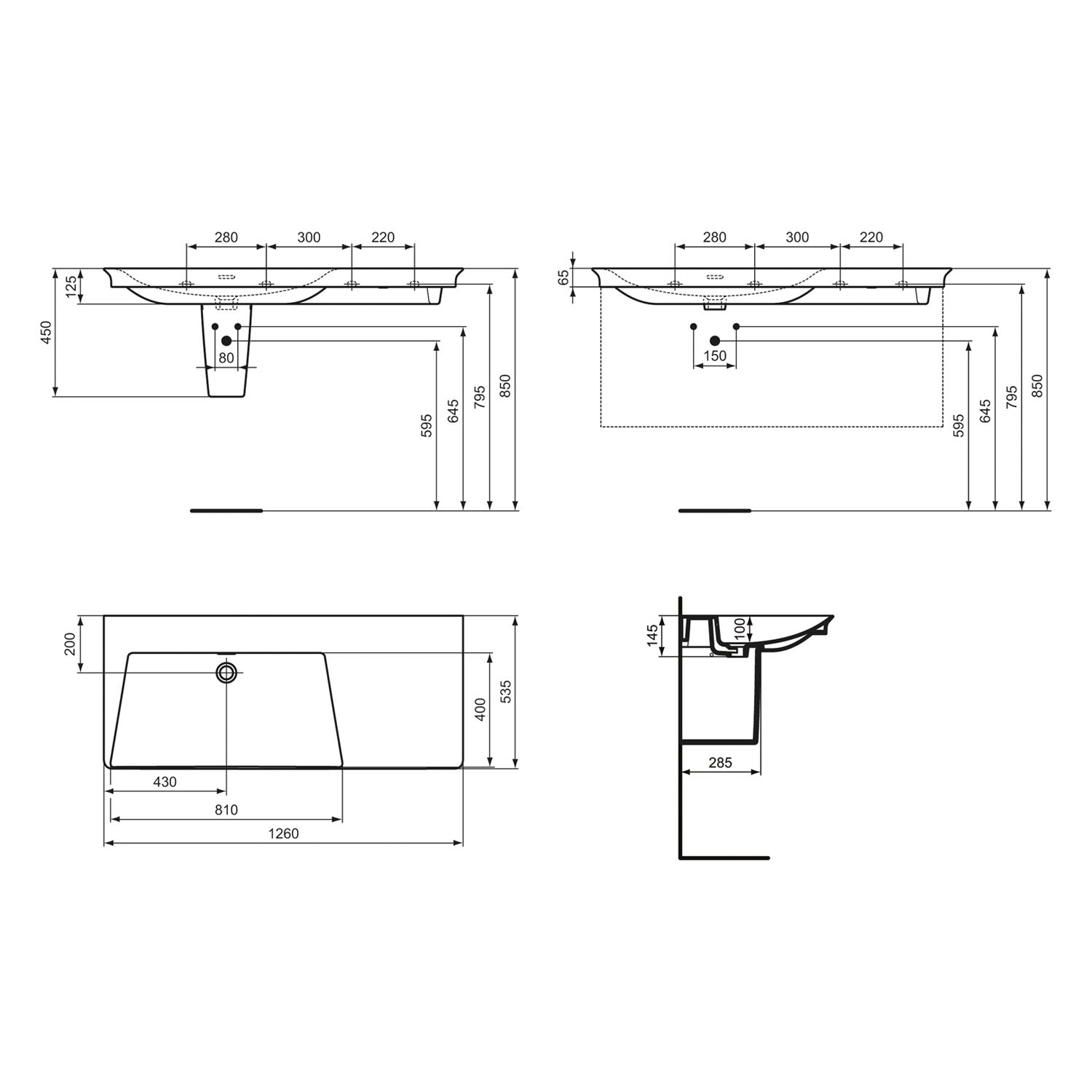 Ideal Standard La Dolce Vita Möbelwaschtisch 126 cm, ohne Hahnloch, mit Überlauf, Ablage rechts